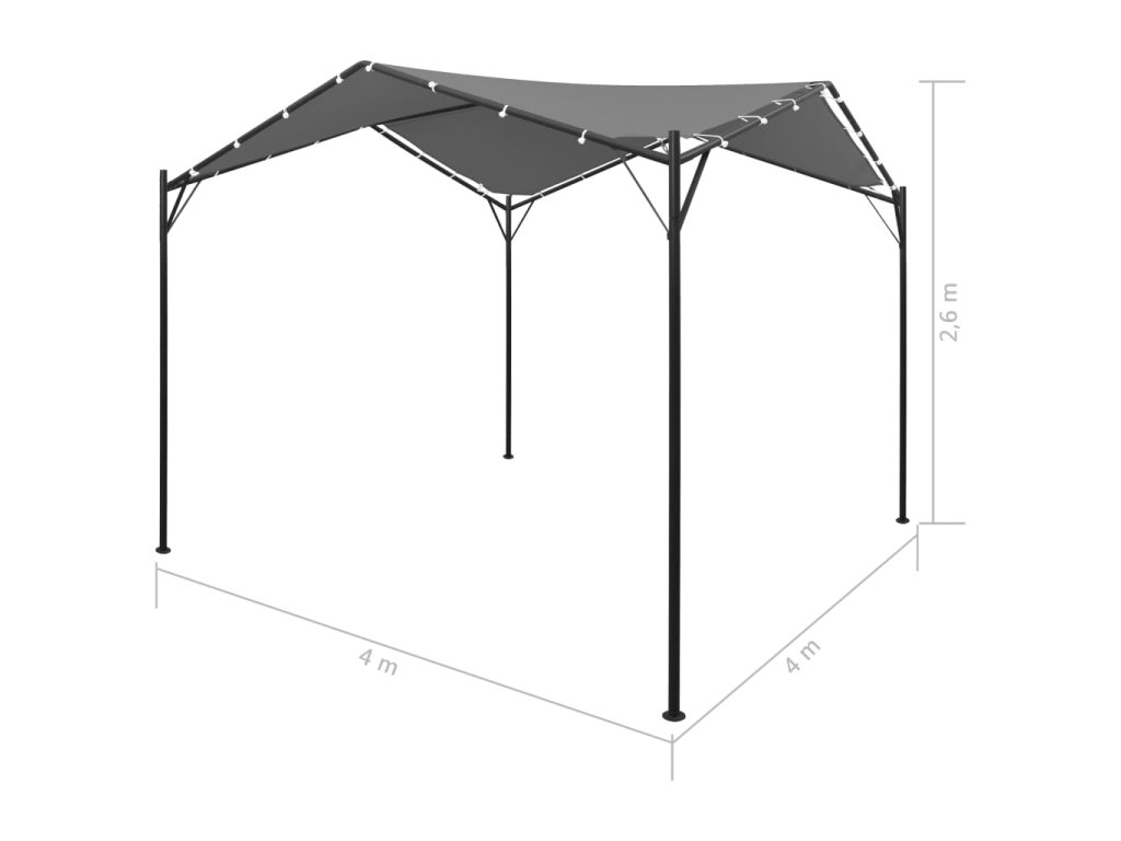 Střecha z oxfordské látky potažené PA skvěle odolává UV záření. Spolu s ocelovým rámem s práškovým nástřikem tak představuje ideální přístřešek do vaší zahrady. Stříška se k rámu připevňuje přiloženými poutky, takže ji nasadíte snadno a rychle. Sestavení altánu je jednoduché.