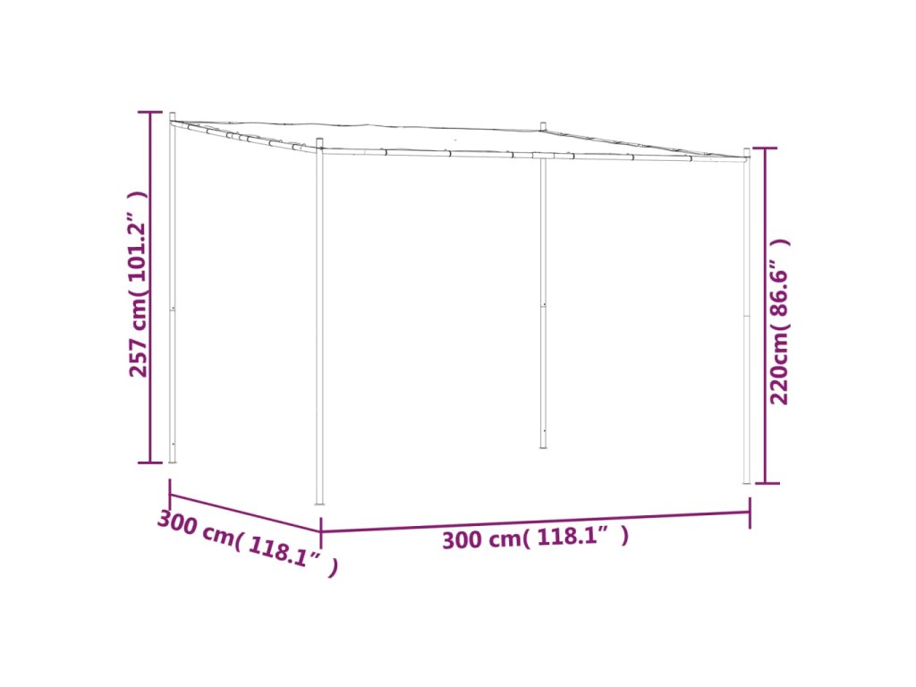 - Stabilní rám: Práškově lakovaný ocelový rám zajišťuje pevnost a stabilitu přístřešku.
