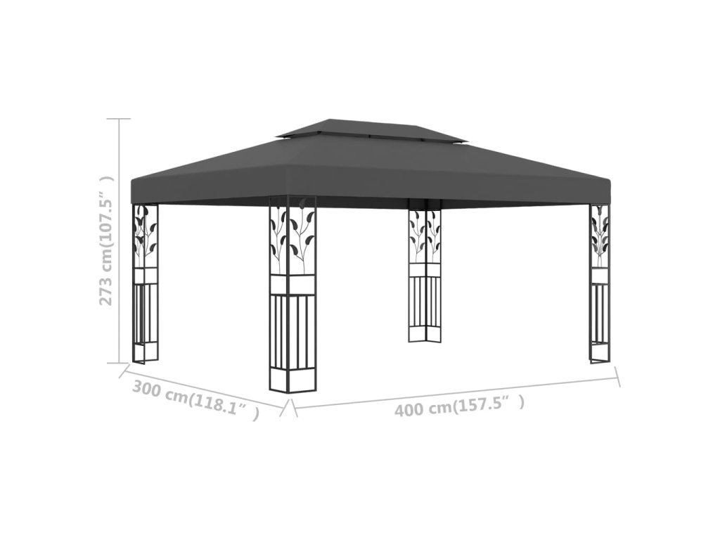 Altán je vyrobený z práškově lakované oceli, je tudíž velice robustní a má dlouhou životnost. Dvojitá střecha je vyrobená ze 100% polyesteru potaženého PA vrstvou, která je voděodolná. Pokud altán nepoužíváte, můžete ji také sejmout a oprat nebo uskladnit.