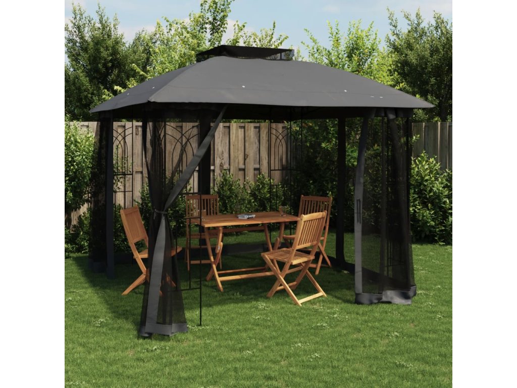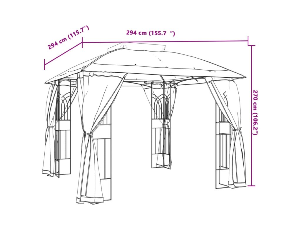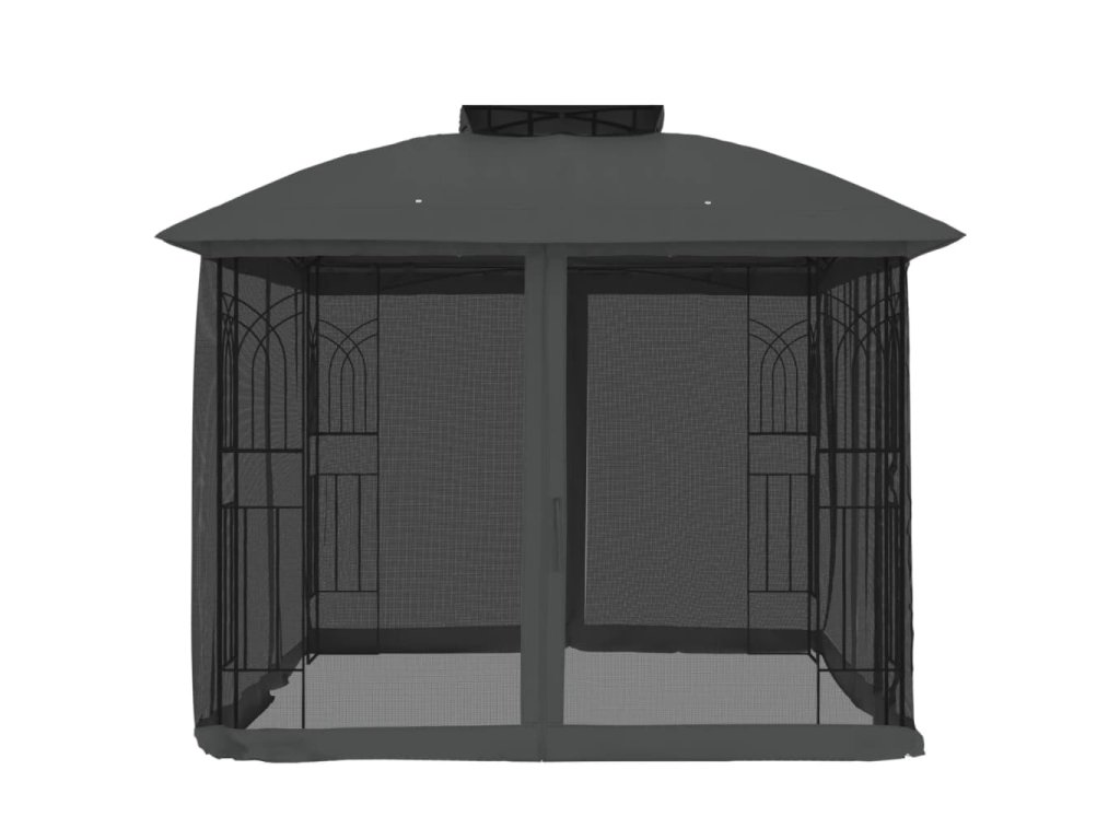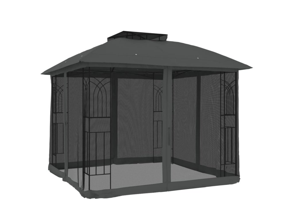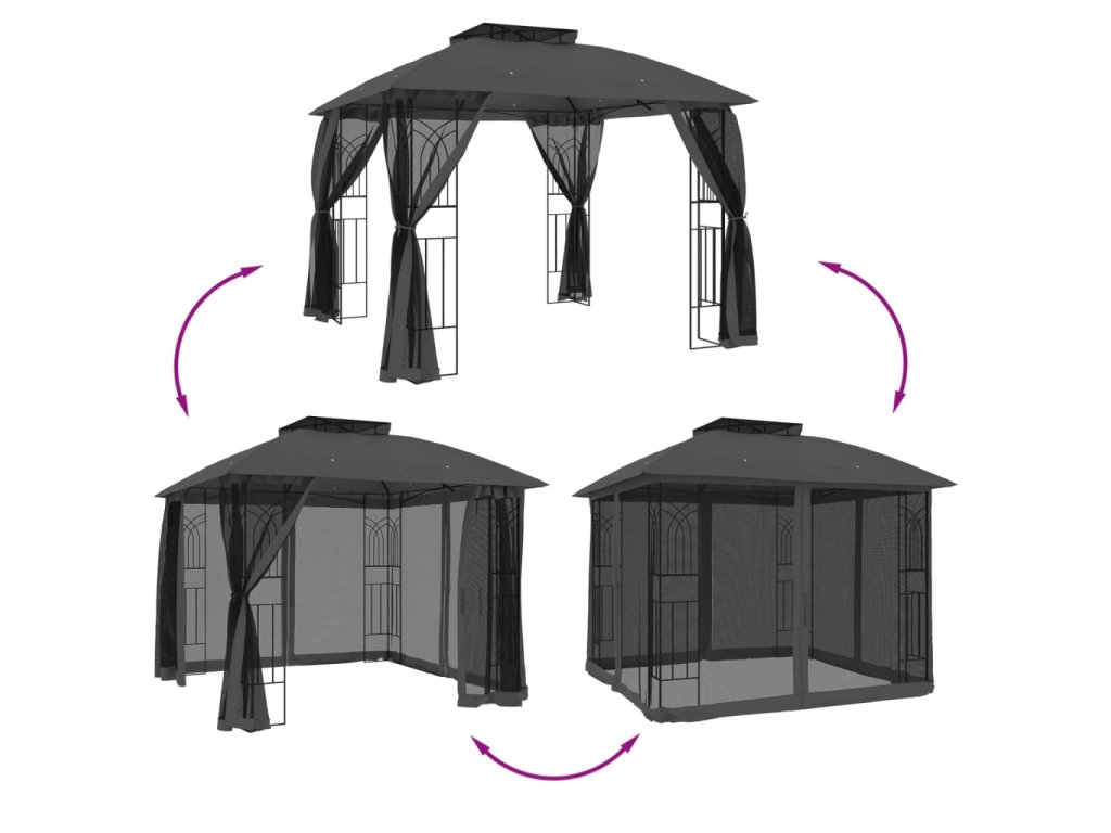- Dvouúrovňová odvětrávaná střešní konstrukce: Altán má elegantní dvouvrstvou konstrukci, která zajišťuje skvělou ventilaci a stabilitu, udržuje vás v chladu za slunečných dnů a posiluje odolnost proti větru za nepříznivého počasí.