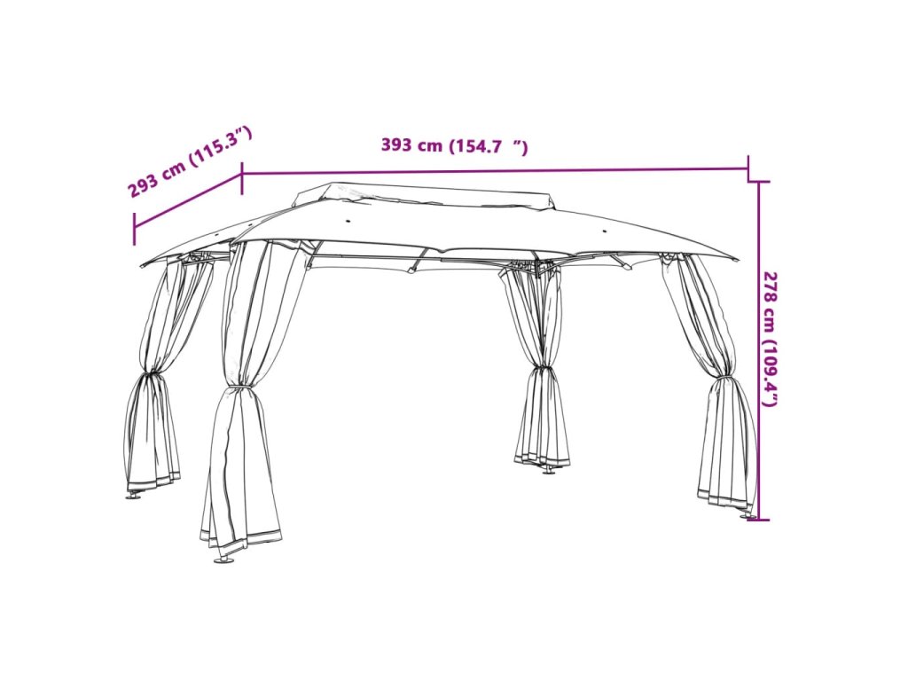 - Dvouúrovňová odvětrávaná střešní konstrukce: Altán má elegantní dvouvrstvou konstrukci, která zajišťuje skvělou ventilaci a stabilitu, udržuje vás v chladu za slunečných dnů a posiluje odolnost proti větru za nepříznivého počasí.