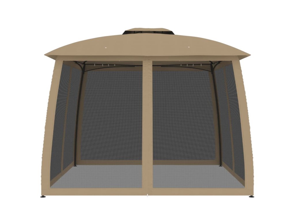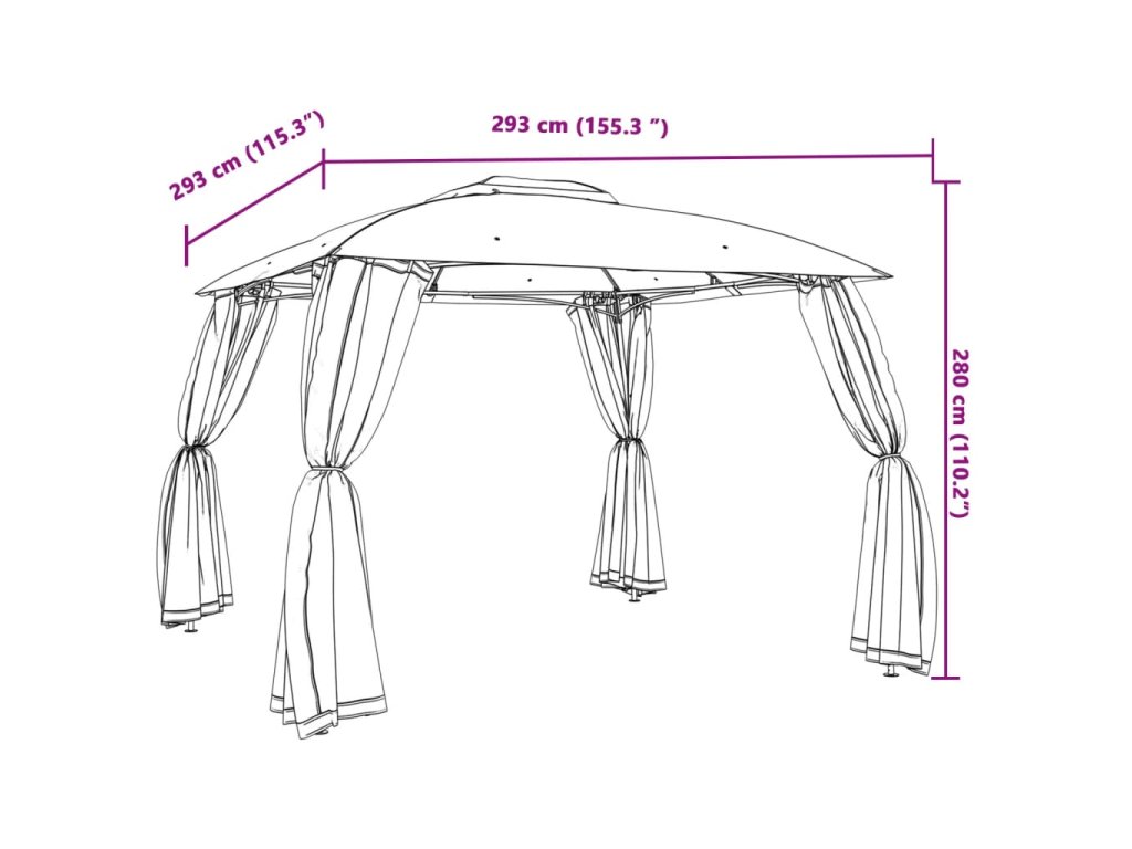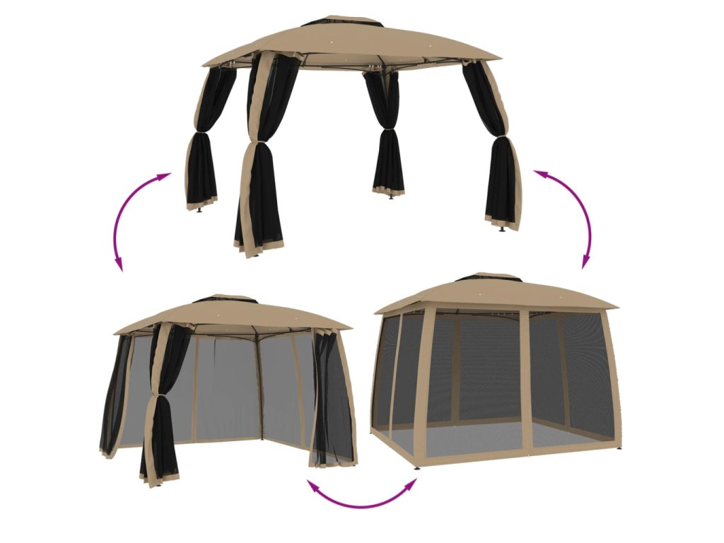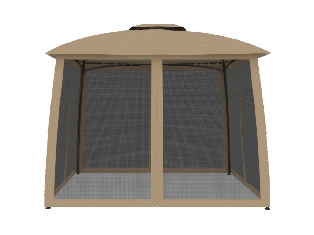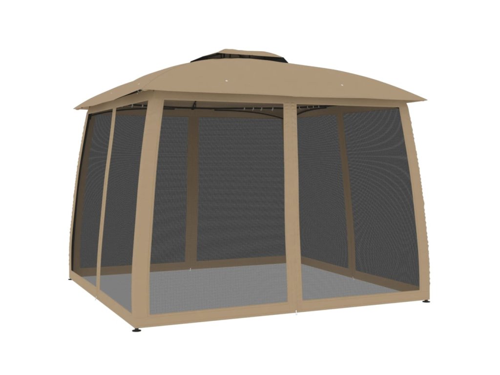 - Dvouúrovňová odvětrávaná střešní konstrukce: Altán má elegantní dvouvrstvou konstrukci, která zajišťuje skvělou ventilaci a stabilitu, udržuje vás v chladu za slunečných dnů a posiluje odolnost proti větru za nepříznivého počasí.