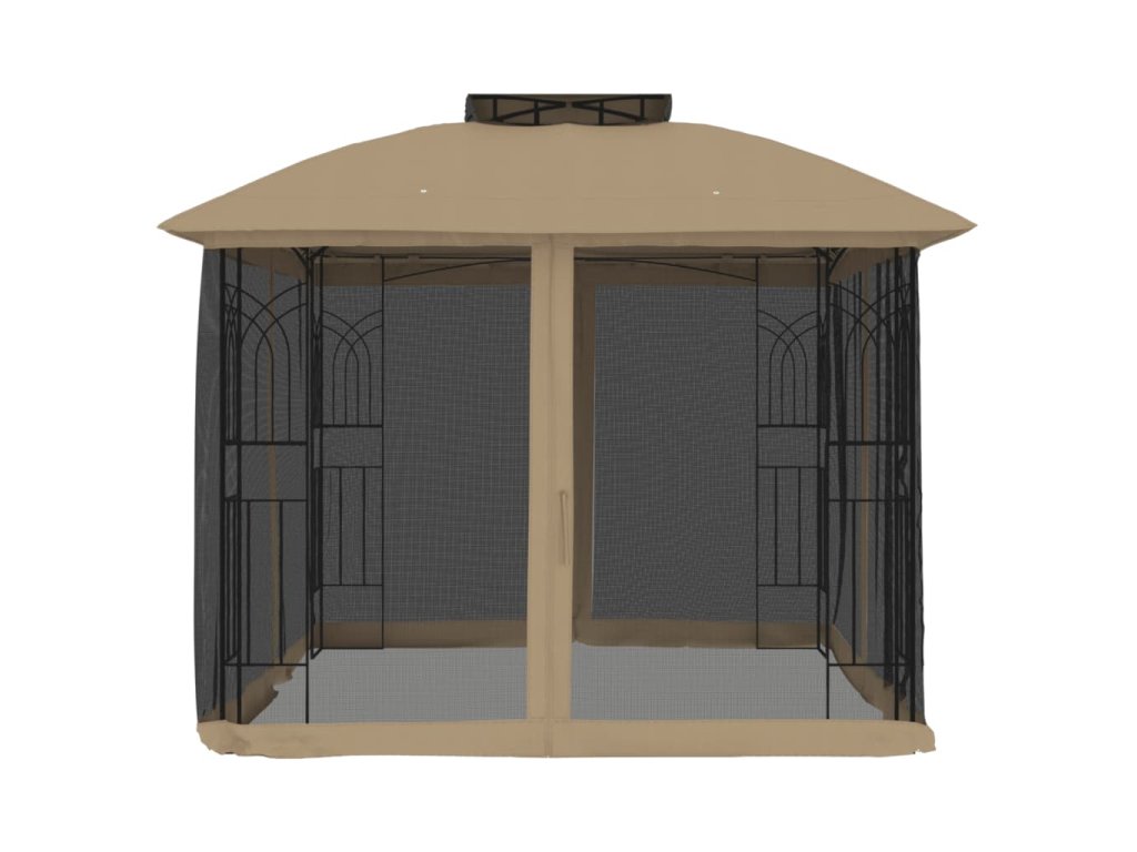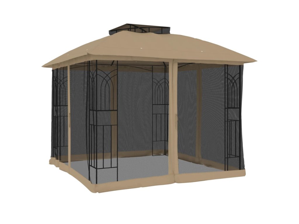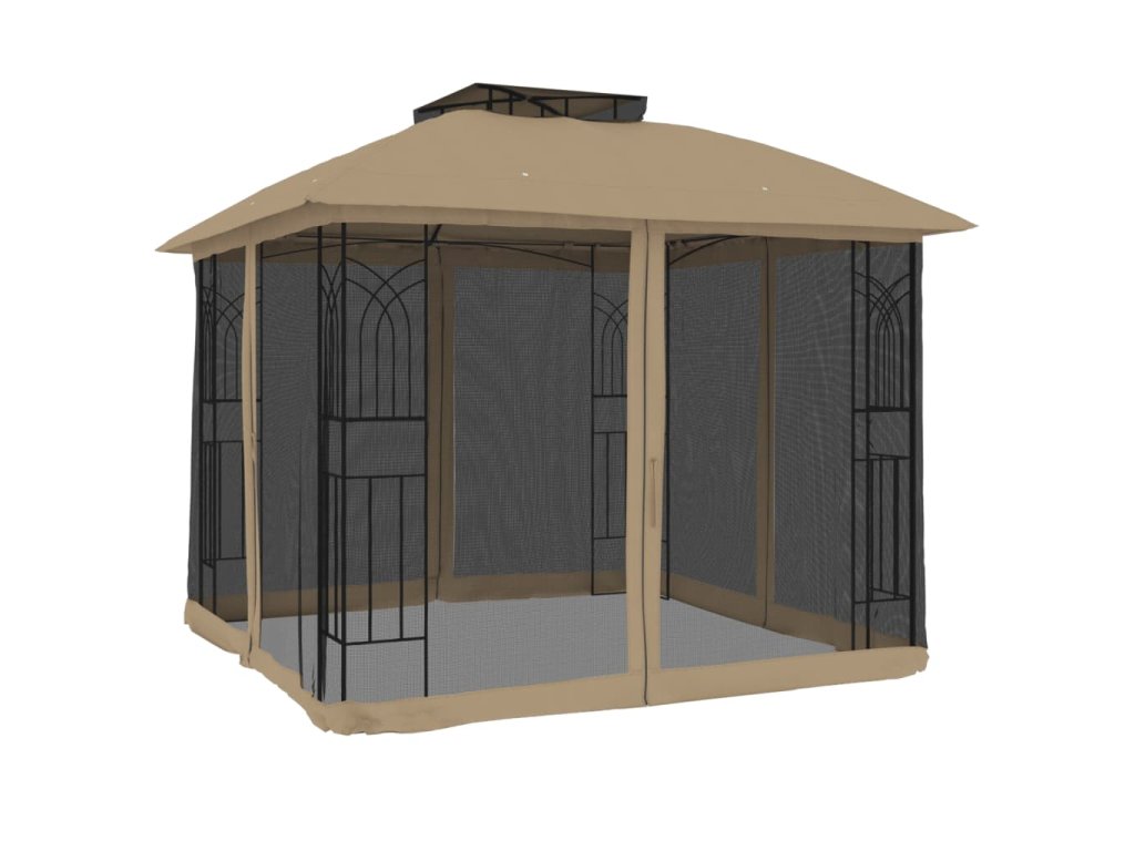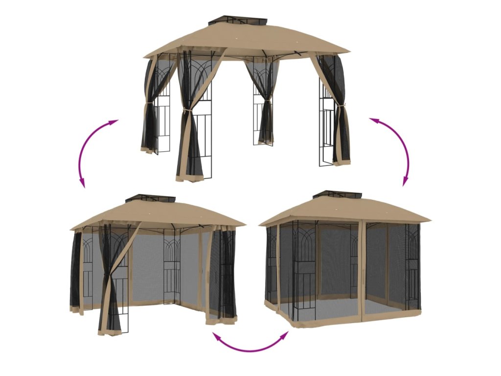 - Dvouúrovňová odvětrávaná střešní konstrukce: Altán má elegantní dvouvrstvou konstrukci, která zajišťuje skvělou ventilaci a stabilitu, udržuje vás v chladu za slunečných dnů a posiluje odolnost proti větru za nepříznivého počasí.