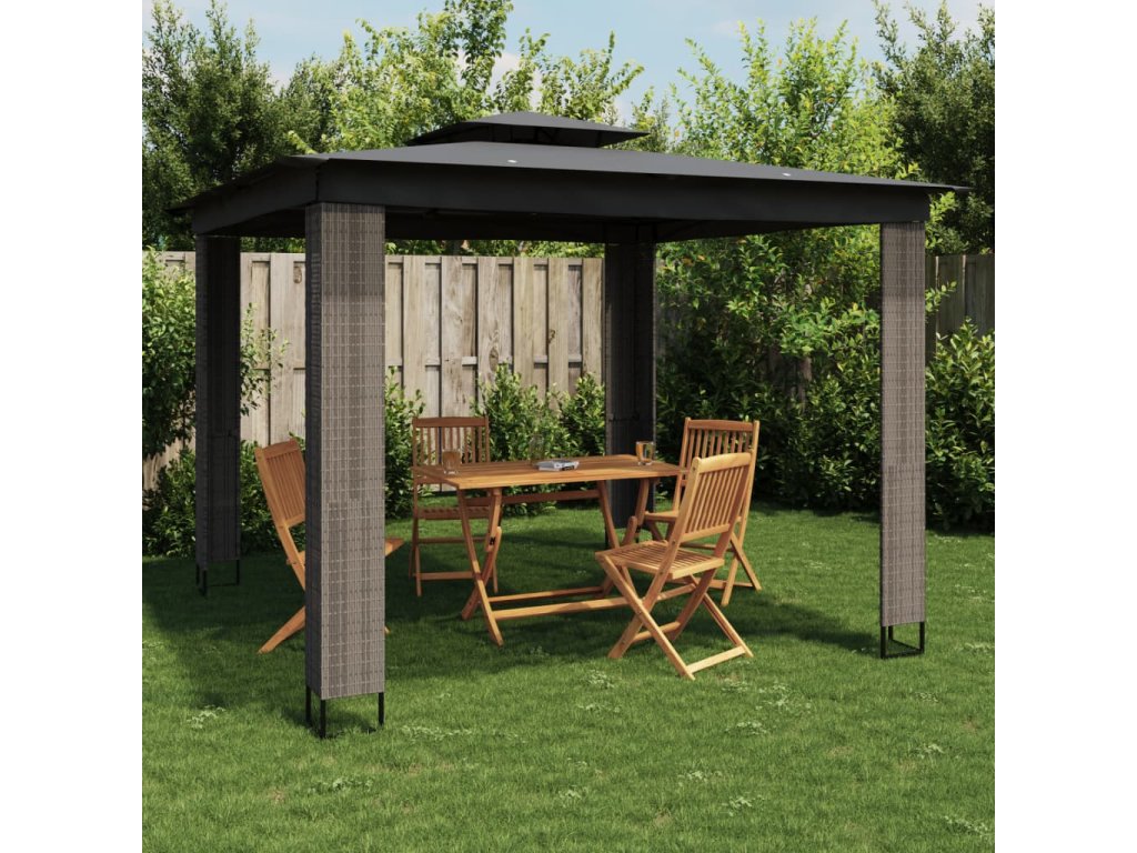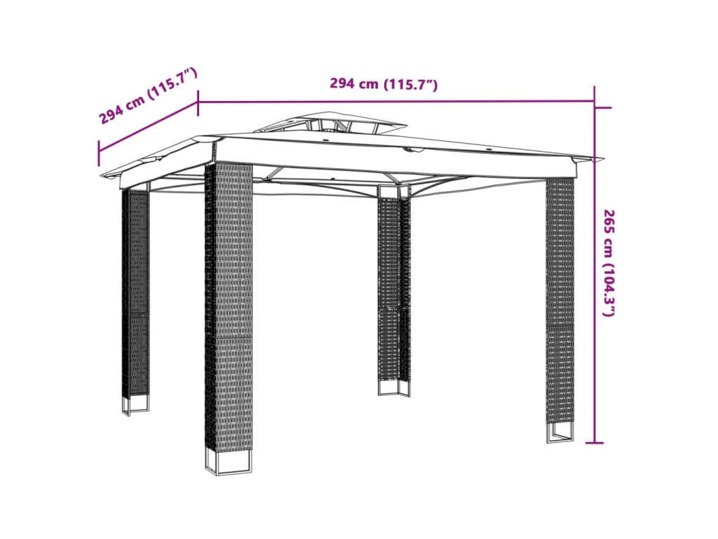 - Dvouúrovňová odvětrávaná střešní konstrukce: Altán má elegantní dvouvrstvou konstrukci, která zajišťuje skvělou ventilaci a stabilitu, udržuje vás v chladu za slunečných dnů a posiluje odolnost proti větru za nepříznivého počasí.