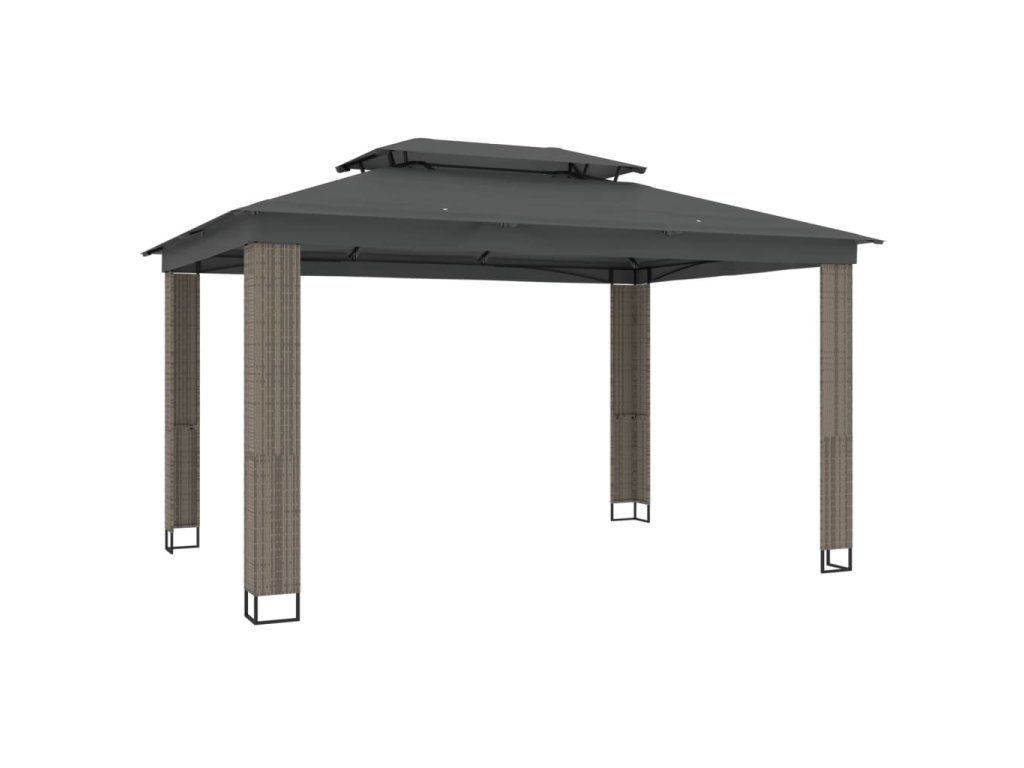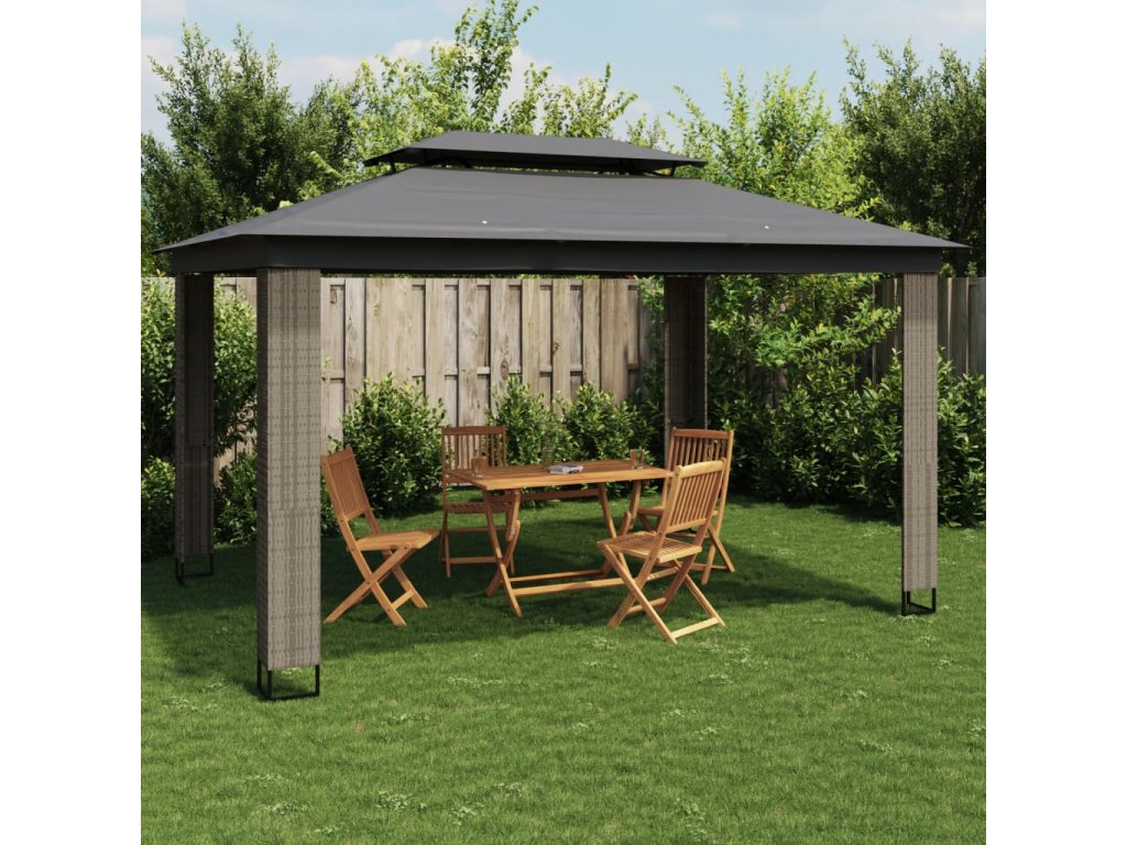 - Dvouúrovňová odvětrávaná střešní konstrukce: Altán má elegantní dvouvrstvou konstrukci, která zajišťuje skvělou ventilaci a stabilitu, udržuje vás v chladu za slunečných dnů a posiluje odolnost proti větru za nepříznivého počasí.