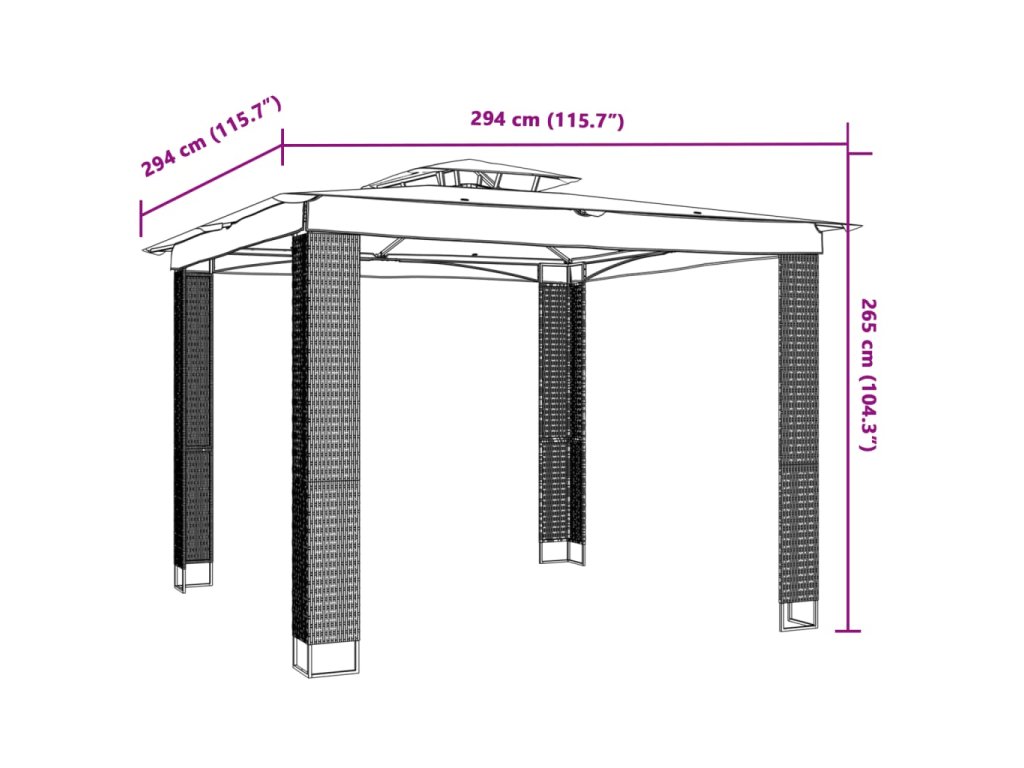 - Dvouúrovňová odvětrávaná střešní konstrukce: Altán má elegantní dvouvrstvou konstrukci, která zajišťuje skvělou ventilaci a stabilitu, udržuje vás v chladu za slunečných dnů a posiluje odolnost proti větru za nepříznivého počasí.