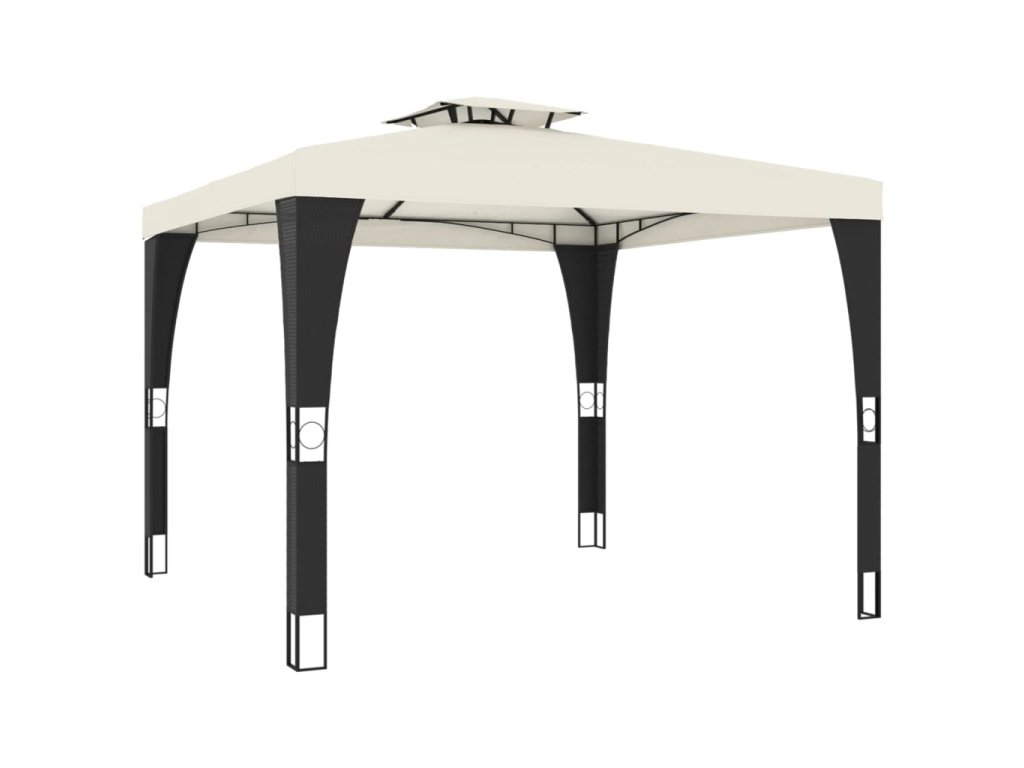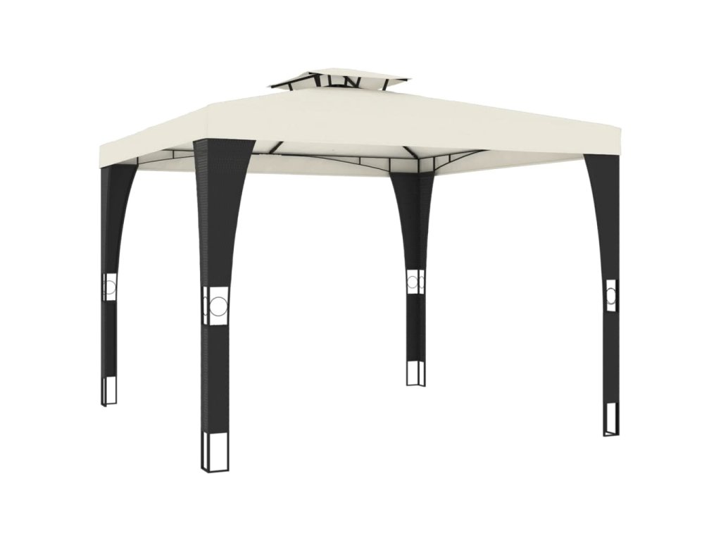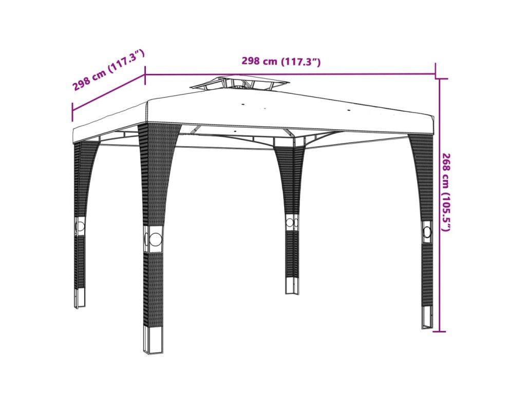 - Dvouúrovňová odvětrávaná střešní konstrukce: Altán má elegantní dvouvrstvou konstrukci, která zajišťuje skvělou ventilaci a stabilitu, udržuje vás v chladu za slunečných dnů a posiluje odolnost proti větru za nepříznivého počasí.