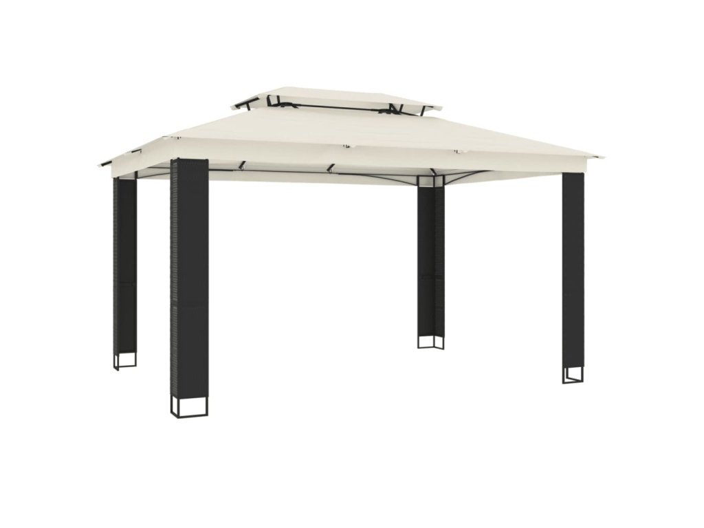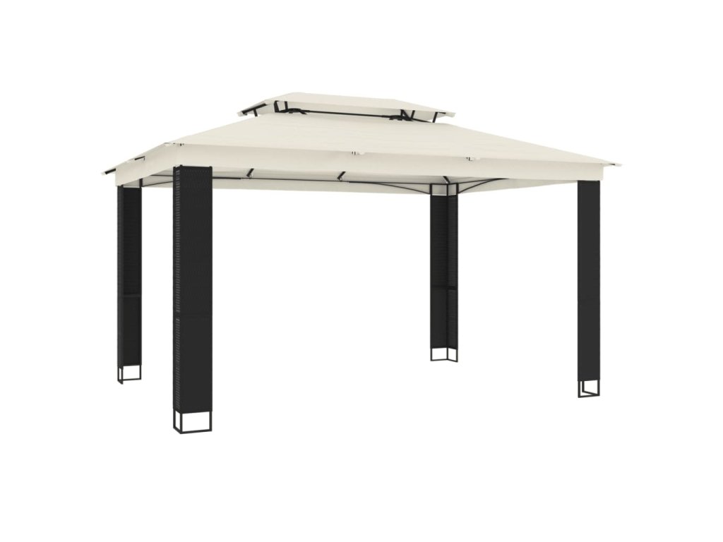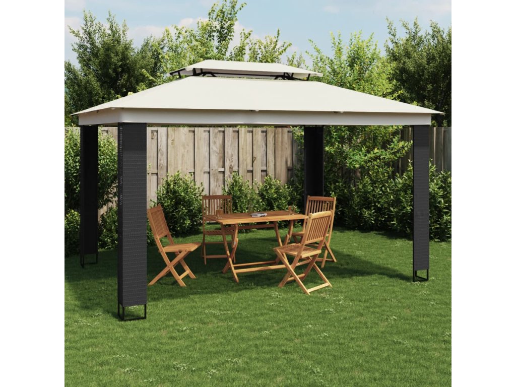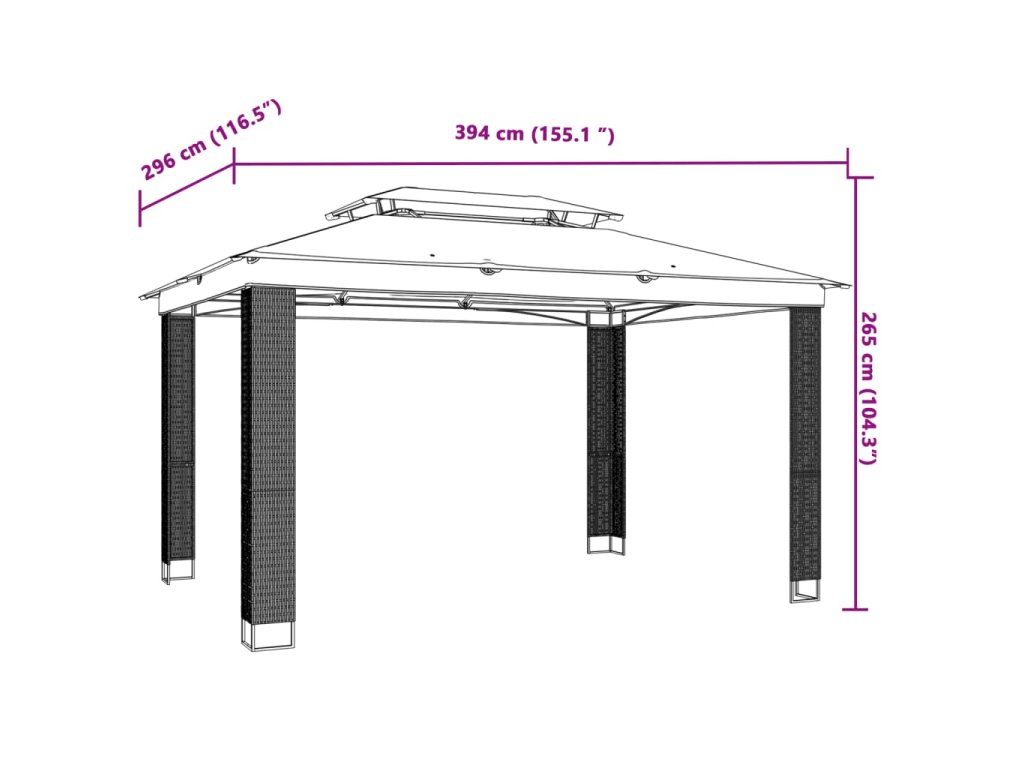 - Dvouúrovňová odvětrávaná střešní konstrukce: Altán má elegantní dvouvrstvou konstrukci, která zajišťuje skvělou ventilaci a stabilitu, udržuje vás v chladu za slunečných dnů a posiluje odolnost proti větru za nepříznivého počasí.