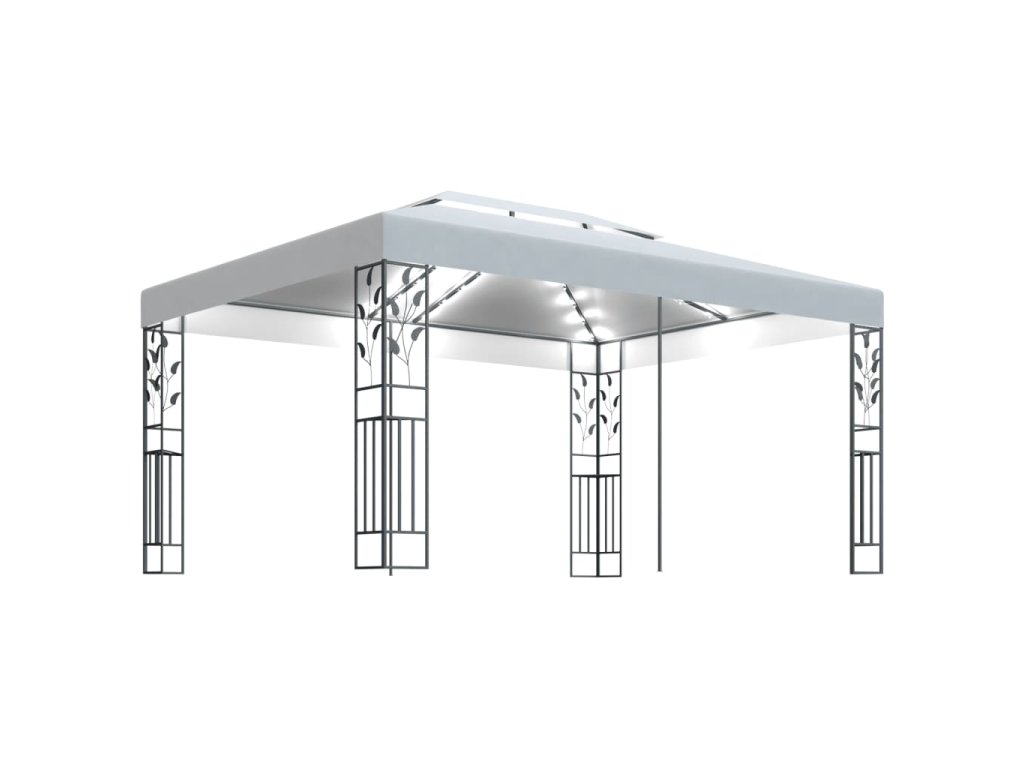 Altán je vyrobený z práškově lakované oceli, takže je velmi robustní a odolný. Náš altán má dvojitou stříšku ze 100% polyesteru s PA povlakem a skvělou voděodolností. Pokud ho nepoužíváte, můžete stříšku sejmout a vyprat nebo uložit. A to není vše! Až zapadne slunce, světelný řetěz vytvoří ve vaší zahradě útulnou atmosféru. Světla nepředstavují zátěž pro životní prostředí, jelikož se ve dne nabíjí solární energií.