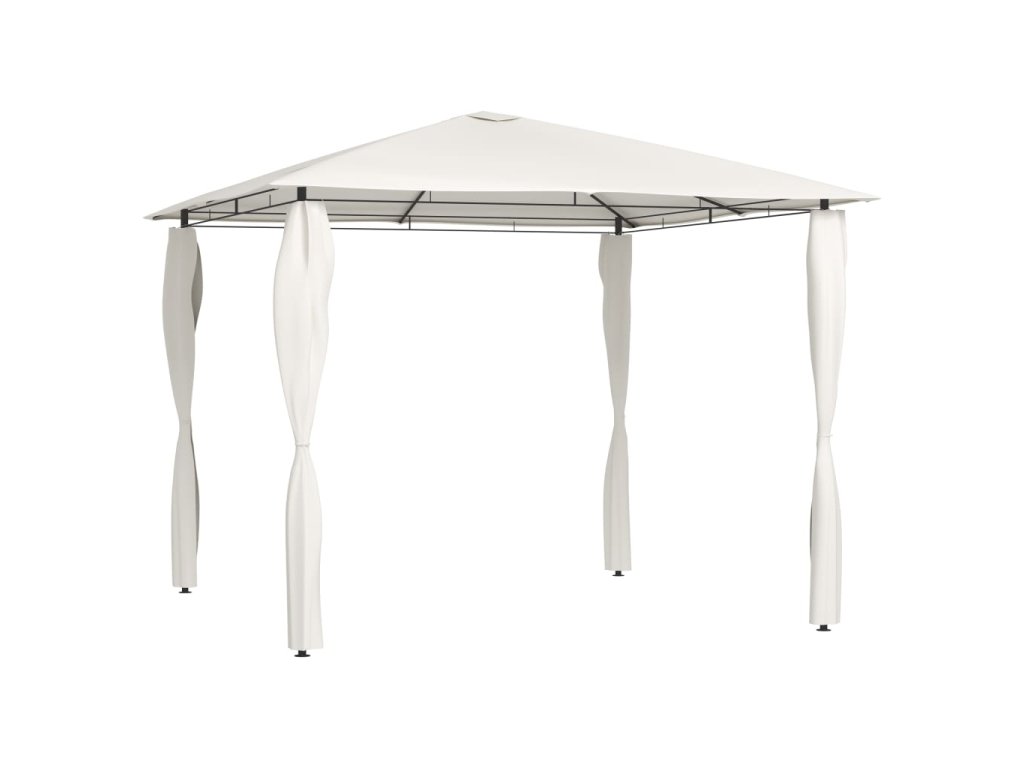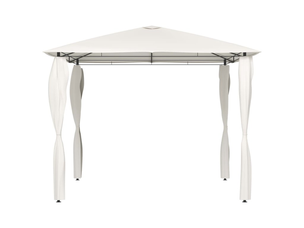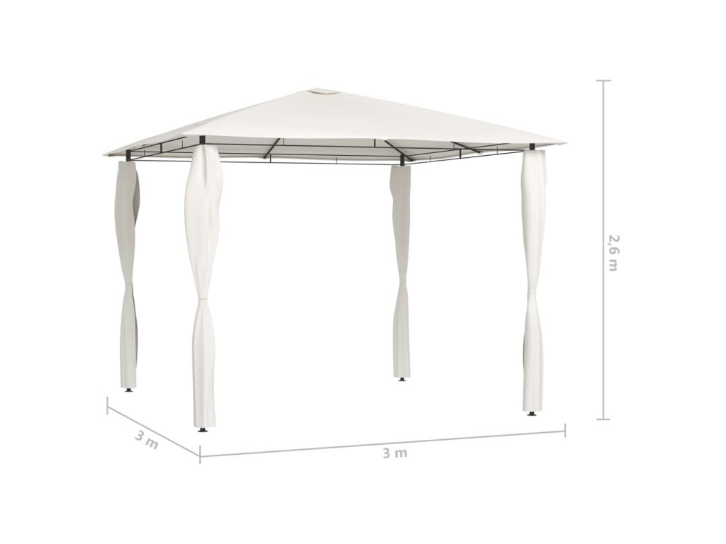 Altán má robustní ocelovou konstrukci, a proto je pevný, odolný a vhodný pro venkovní použití. Střecha vás ochrání před deštěm i žhavým sluncem, takže si můžete bez obav užívat svoje venkovní akce.