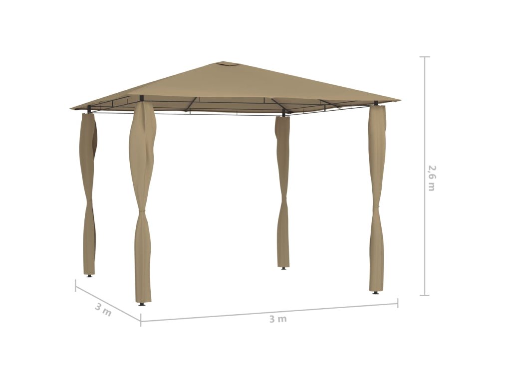 Altán má robustní ocelovou konstrukci, a proto je pevný, odolný a vhodný pro venkovní použití. Střecha vás ochrání před deštěm i žhavým sluncem, takže si můžete bez obav užívat svoje venkovní akce.