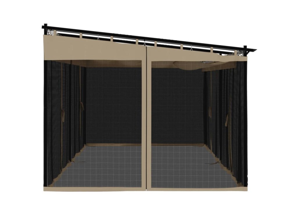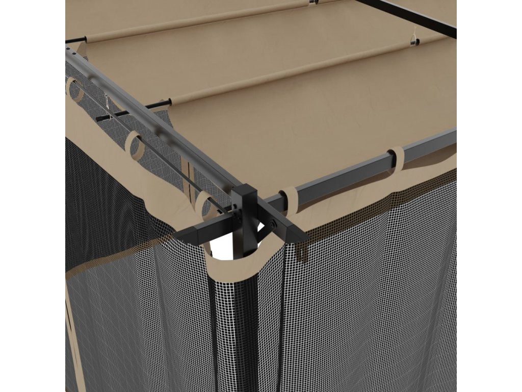 - Robustní a odolný rám: Rám je vyroben z nerezavějící oceli a je vhodný pro dlouhodobé venkovní použití. Zaručuje stabilitu díky pevným nosníkům, které podpírají střechu, a zesíleným stojkám.