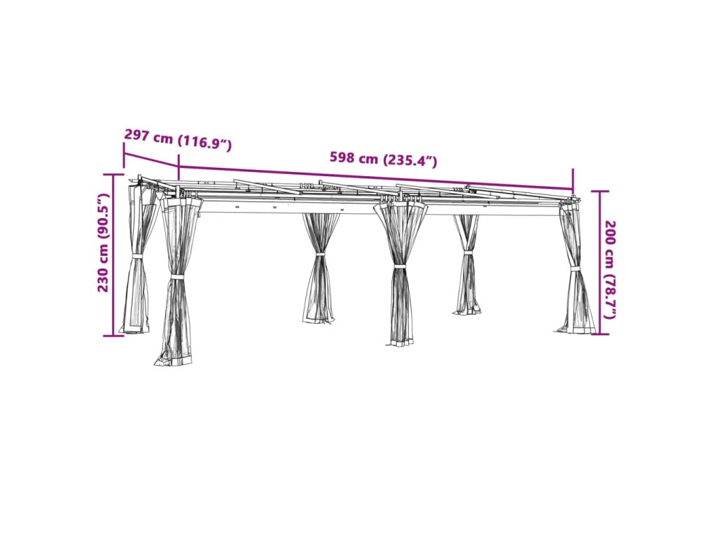 - Celkové rozměry: 598 x 297 x 230 cm (D x Š x V)
