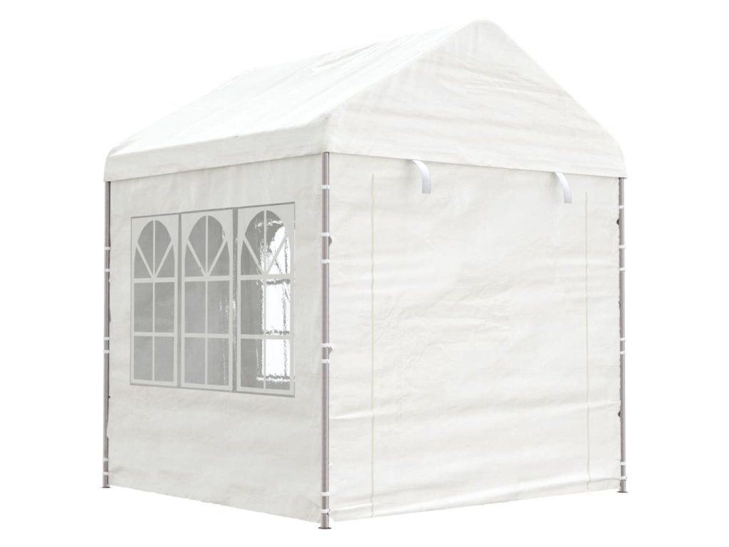 Tento altán se střechou a bočnicemi je ideálním úkrytem před sluncem.