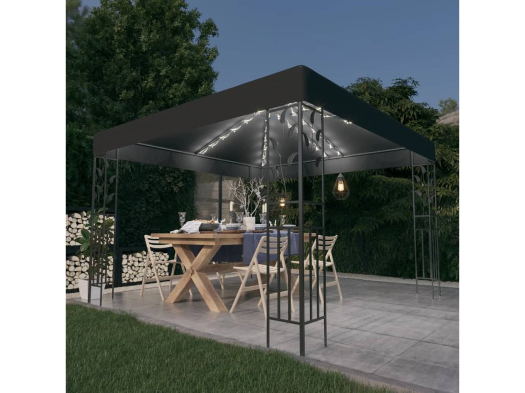 Altán má robustní práškově lakovanou ocelovou konstrukci, která je odolná a nerezaví a vydrží vám sloužit dlouhá léta. Prodyšná střecha vás ochrání před sluncem i deštěm, a tak se nemusíte obávat, že by vám nepřízeň počasí při rodinných sešlostech, grilovačkách, odpoledních piknicích a narozeninových oslavách pokazila zábavu. Stříška je vyrobená z kvalitní látky potažené vrstvou PA, která zablokuje většinu škodlivého záření. Zesílené rohy a poutka na suchý zip usnadňují připevnění střechy na rám. A to není vše! Až zapadne slunce, světelný řetěz vytvoří ve vaší zahradě útulnou atmosféru. Světla nepředstavují zátěž pro životní prostředí, jelikož se ve dne nabíjí solární energií.