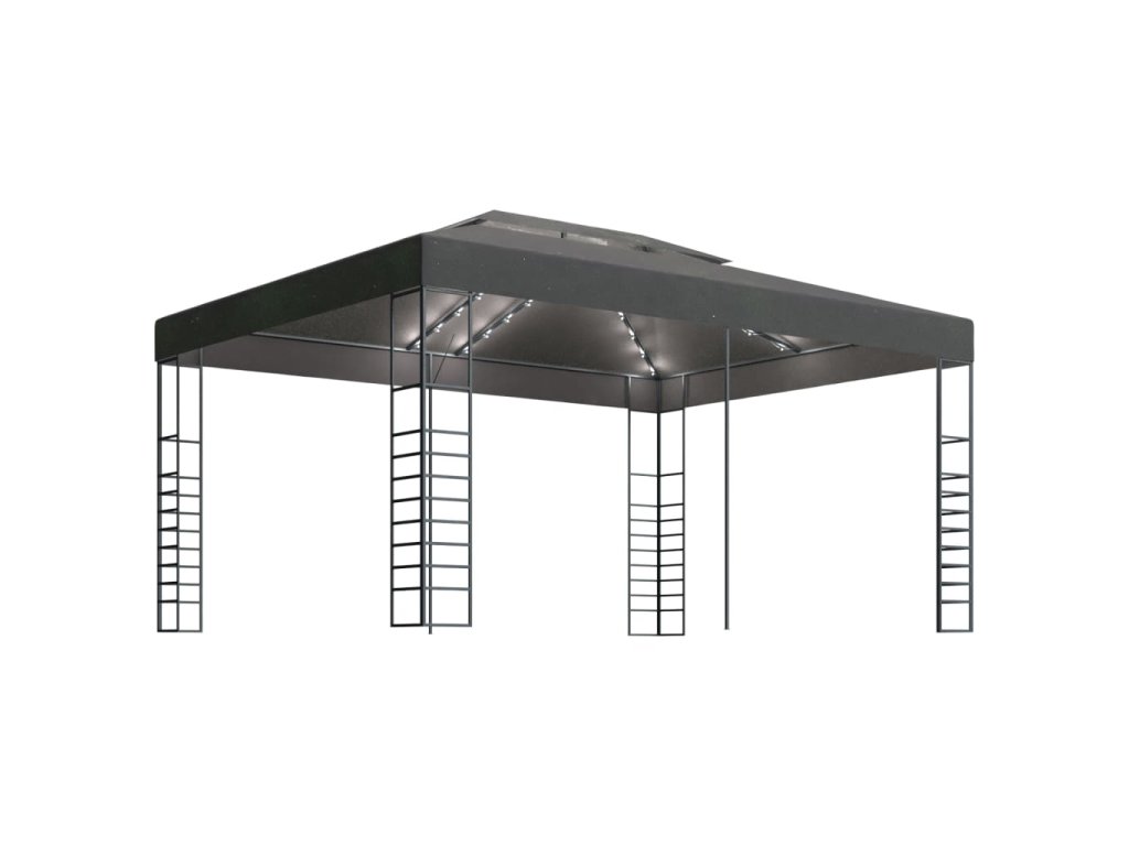 Užijte si vaše rodinné sešlosti, grilovačky, odpolední pikniky či narozeninové oslavy bez obav – tento plátěný a odvětrávaný altán vás totiž spolehlivě ochrání před sluncem i deštěm. Zahradní stan má pevnou ocelovou konstrukci s dekorativními křížovými ornamenty a 100% polyesterovou střechu. Sestavení produktu je snadné. A to není vše! Až zapadne slunce, světelný řetěz vytvoří ve vaší zahradě útulnou atmosféru. Světla nepředstavují zátěž pro životní prostředí, jelikož se ve dne nabíjí solární energií.