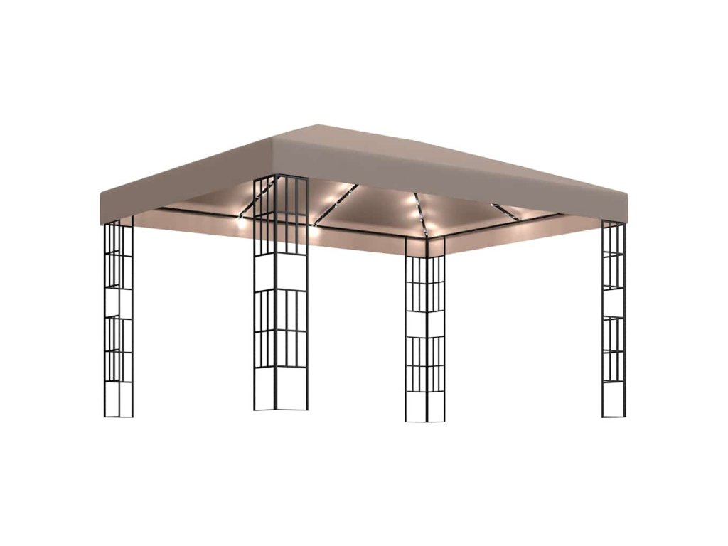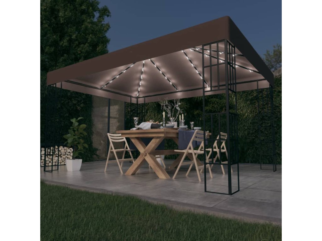 Užijte si své rodinné sešlosti, grilování, odpolední pikniky či narozeninové oslavy bez obav. Tento vzdušný přístřešek vás totiž spolehlivě ochrání před sluncem i deštěm. Má pevnou ocelovou konstrukci s dekorativními čtvercovými ornamenty a polyesterovou střechu. Střecha má zesílené rohy a poutka na suchý zip, která umožňují její snadné upevnění na rám. A to není vše! Až zapadne slunce, světelný řetěz vytvoří ve vaší zahradě útulnou atmosféru. Světla nepředstavují zátěž pro životní prostředí, jelikož se ve dne nabíjí solární energií.