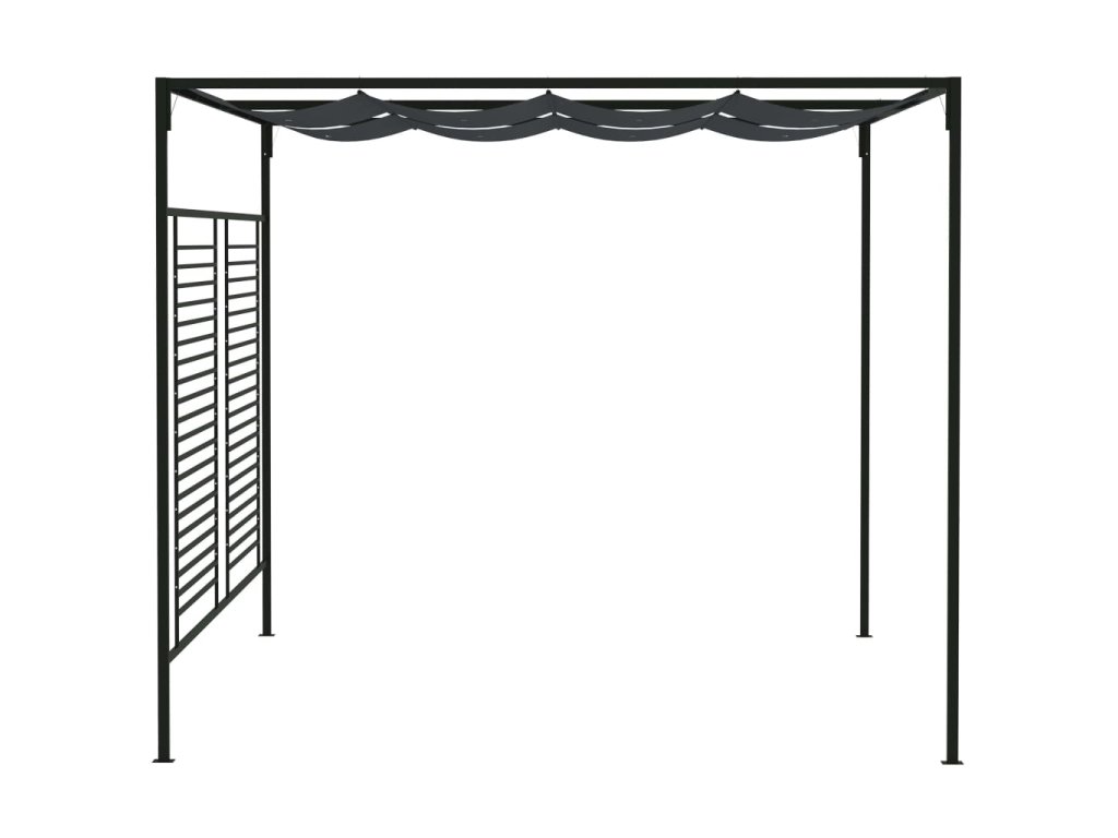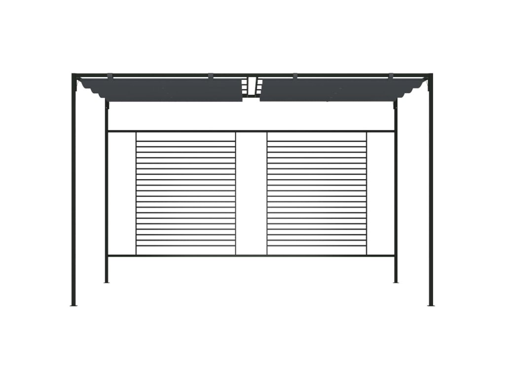 Tento přístřešek má pevnou železnou konstrukci, je tudíž dostatečně bytelný a odolný pro venkovní použití. Zatahovací střecha vás ochrání před škodlivými UV paprsky a také před deštěm, takže si můžete bezstarostně užít jakoukoli venkovní akci.