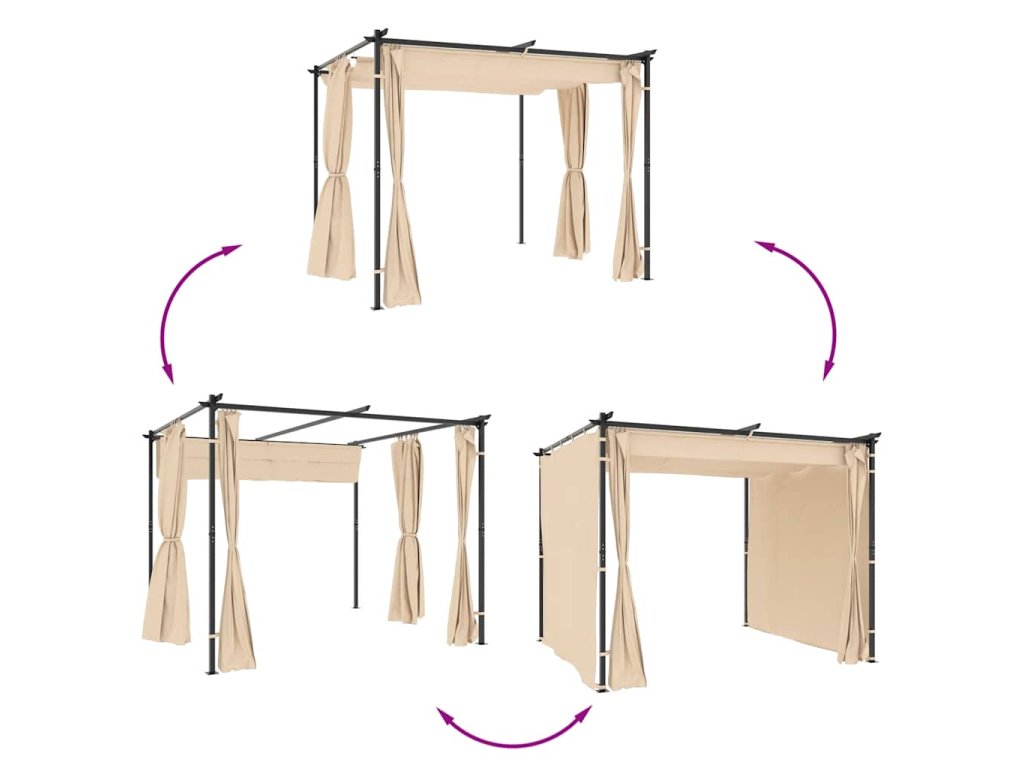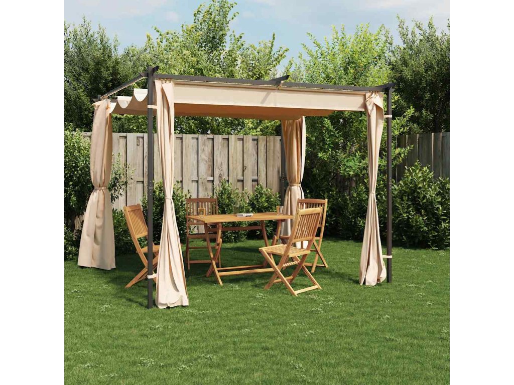 Party stan má práškově lakovanou ocelovou konstrukci, která je stabilní a má dlouhou životnost. Polyesterová střecha s PA vrstvou zaručuje odolnost vůči vodě a UV záření. Altán je doplněný bočními závěsy pro více soukromí a lepší zastínění.