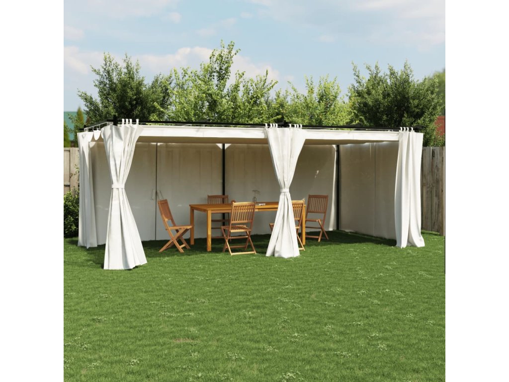 - Robustní a odolný rám: Rám je vyroben z nerezavějící oceli a je vhodný pro dlouhodobé venkovní použití. Zaručuje stabilitu díky pevným nosníkům, které podpírají střechu, a zesíleným stojkám.