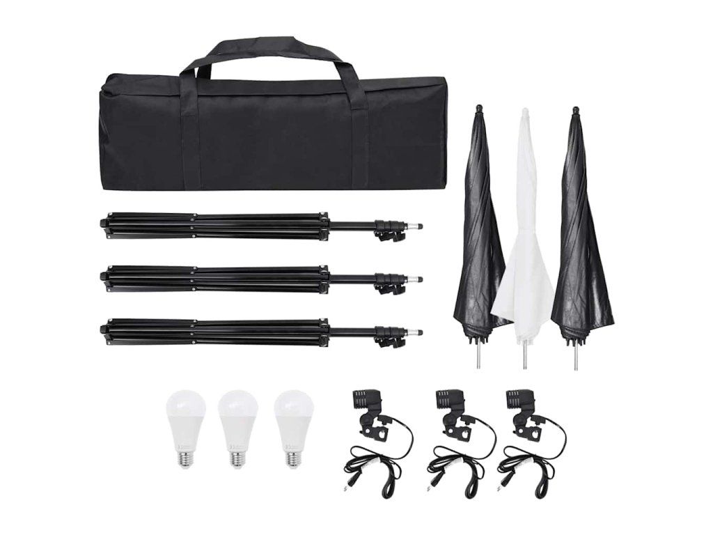 - Vynikající světelný výkon: Při použití denních světel s barevnou teplotou 5 500 kelvinů je možné zachytit váš objekt přirozeným způsobem. Tři deštníky zajišťují měkké světlo, takže se vyhnete ostrým stínům.