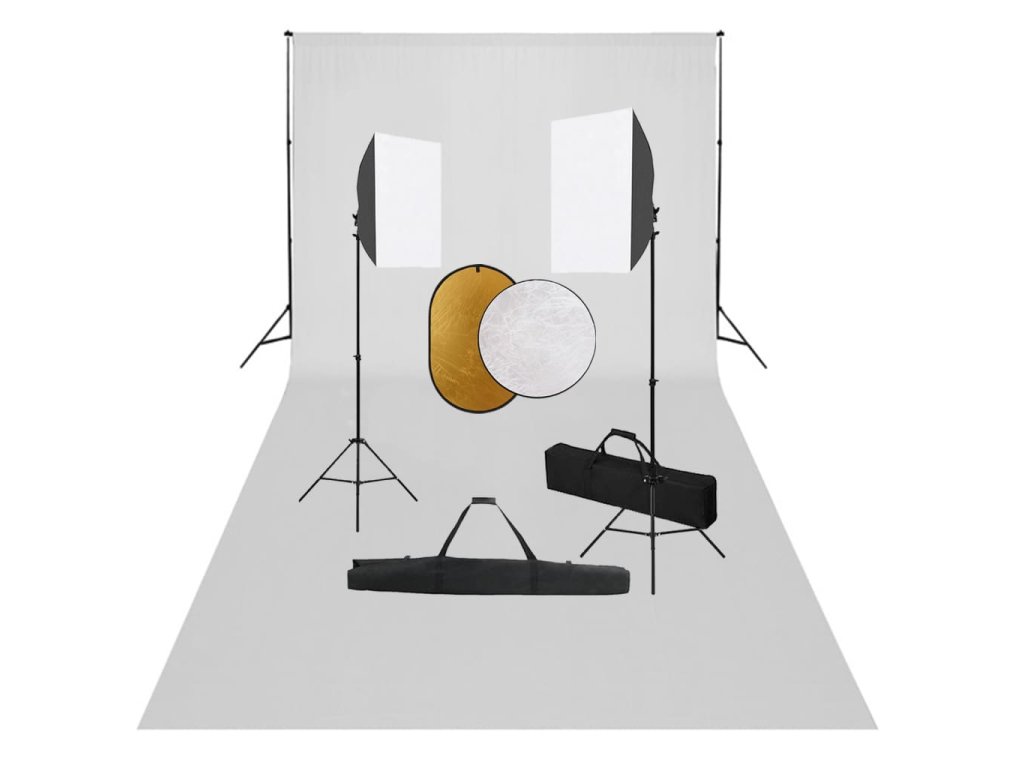 Šířku a výšku teleskopického systému na pozadí lze upravovat, aby vyhovoval vašim různým potřebám. V kombinaci s pozadím se skvěle hodí k fotografování a filmování. Tato profesionální studiová světla byla navržena tak, aby při honbě za dokonalou fotografií změkčila světelný proud a odstranila stíny. Studiový softbox obdržíte i se stabilním a pevným ocelovým stojanem, u kterého lze nastavovat výšku od 90 do 208 cm, aby co nejlépe vyhověl vašim potřebám. Stativ má navíc standardní závit 1/4" pro všechny analogové a digitální fotoaparáty. Sada odrazových desek obsahuje kulatou odraznou desku 5 v 1 a elipsovou odraznou desku 2 v 1. Každá z nich je dodávána s různými typy povrchů. Můžete tak pracovat s rozličnými kombinacemi pro teplejší a chladnější světla. Součástí balení je také přepravní taška, set lze tedy jednoduše uskladnit nebo přenášet.