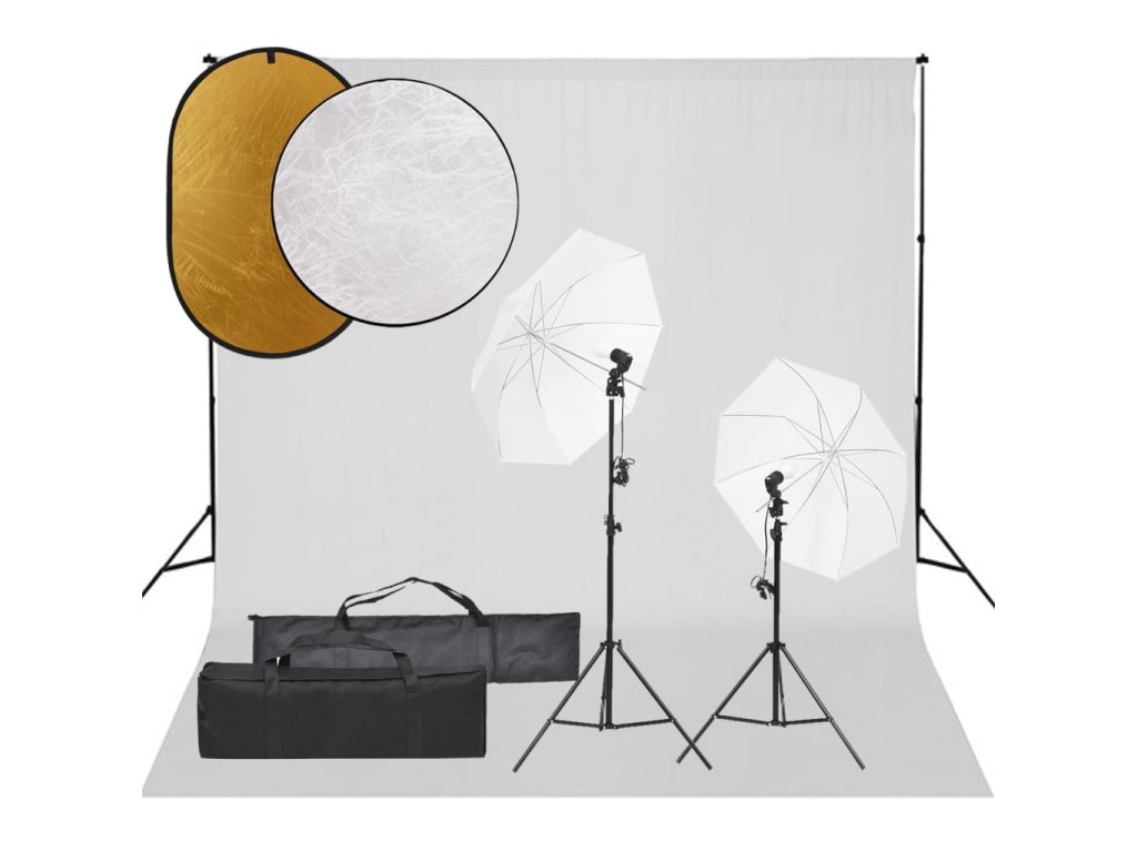 - Vynikající světelný výkon: Při použití denních světel s barevnou teplotou 5 500 kelvinů je možné zachytit váš objekt přirozeným způsobem. Dva bílé deštníky zajišťují měkké světlo, takže se vyhnete ostrým stínům.