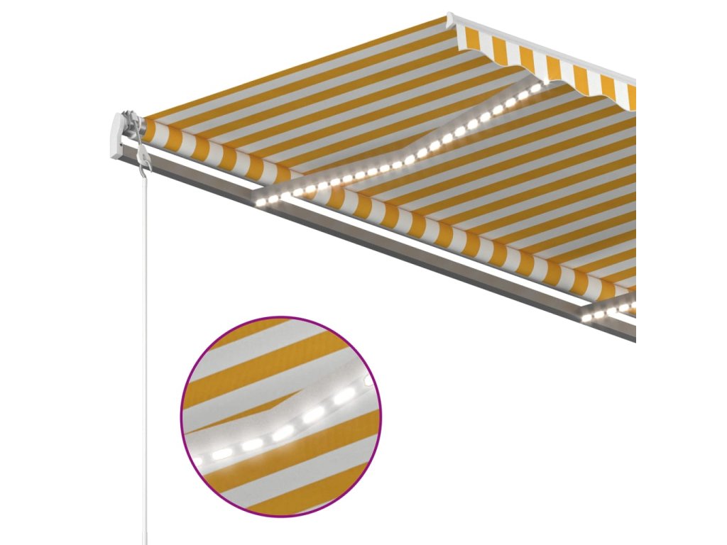 Zahradní markýza má práškově lakovaný hliníkový rám, který nerezaví, je lehký, a přitom tvoří velice pevnou konstrukci. Stříška je vyrobená z polyesteru s vysokou hustotou a s PU povlakem, skvěle proto odolává vodě i UV záření. Úhel a výšku markýzy si navíc můžete nastavit tak, aby to vyhovovalo vašim momentálním potřebám. Automatickou stříšku snadno roztáhnete a zatáhnete pomocí dálkového ovladače. K hladkému ovládání vám poslouží také dlouhá ruční klika. Markýza je dále opatřená senzorem větru, který ji za větrných dnů automaticky zavře. LED světla vám zase v noci poskytnou energeticky úsporné osvětlení.