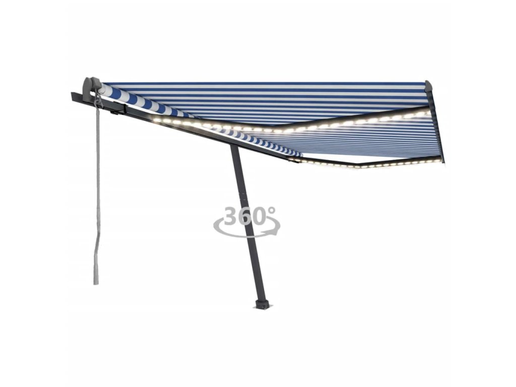 Zahradní markýza má práškově lakovaný hliníkový rám, který nerezaví, je lehký a přitom tvoří velice pevnou konstrukci. Stříška je vyrobená z polyesteru s vysokou hustotou a s PU povlakem, skvěle proto odolává vodě i UV záření. Úhel a výšku samostatně stojící markýzy si navíc můžete nastavit podle vašich momentálních potřeb. Robustní stojan lze otáčet o 360 stupňů, což vám dává maximální možnost přizpůsobení. Automatickou stříšku snadno roztáhnete a zatáhnete pomocí dálkového ovladače. K hladkému ovládání vám poslouží také dlouhá ruční klika. Markýza je rovněž opatřená senzorem větru, který ji za větrných dnů automaticky zavře. LED světla vám zase v noci poskytnou energeticky úsporné osvětlení.