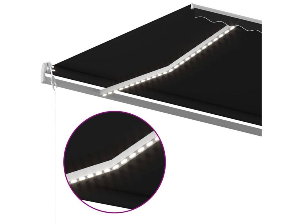 Zahradní markýza má práškově lakovaný hliníkový rám, který nerezaví, je lehký, a přitom tvoří velice pevnou konstrukci. Stříška je vyrobená z polyesteru s vysokou hustotou a s PU povlakem, skvěle proto odolává vodě i UV záření. Úhel a výšku markýzy si navíc můžete nastavit tak, aby to vyhovovalo vašim momentálním potřebám. Automatickou stříšku snadno roztáhnete a zatáhnete pomocí dálkového ovladače. K hladkému ovládání vám poslouží také dlouhá ruční klika. Markýza je dále opatřená senzorem větru, který ji za větrných dnů automaticky zavře. LED světla vám zase v noci poskytnou energeticky úsporné osvětlení.