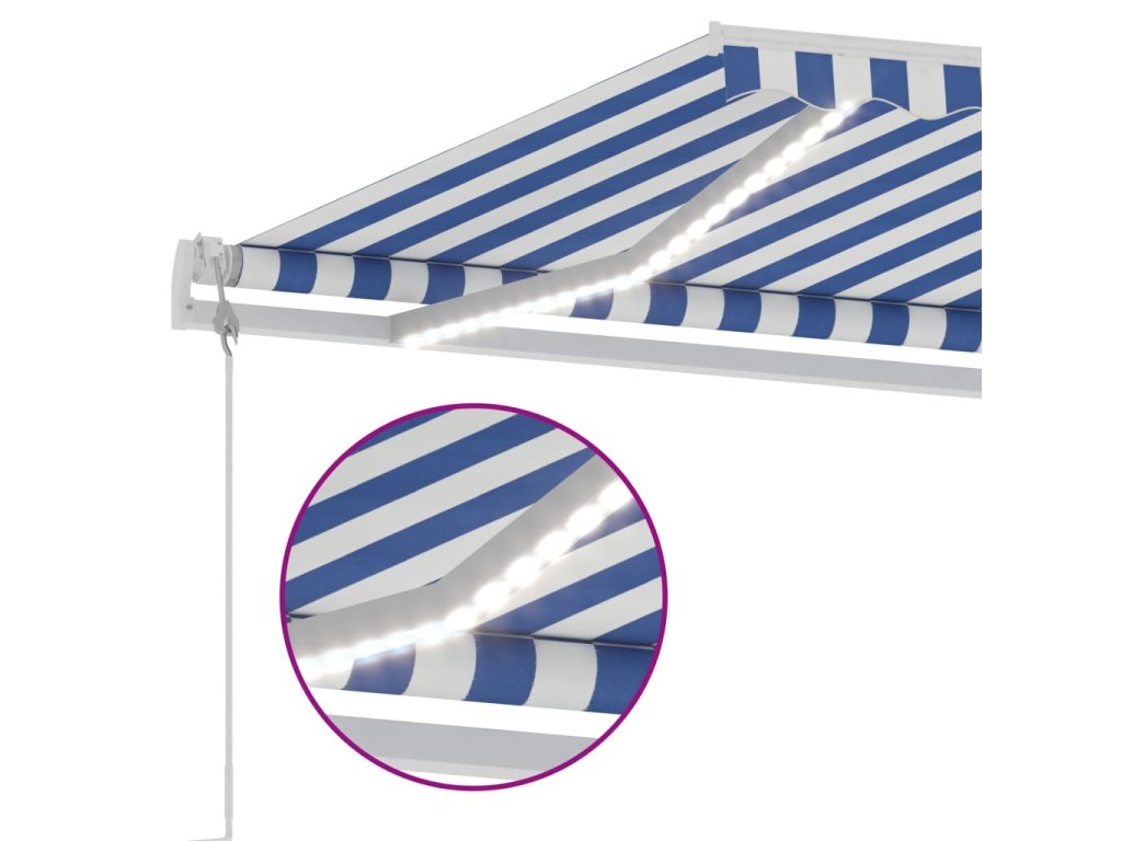 Zahradní markýza má práškově lakovaný hliníkový rám, který nerezaví, je lehký a přitom tvoří velice pevnou konstrukci. Stříška je vyrobená z polyesteru s vysokou hustotou a s PU povlakem, skvěle proto odolává vodě i UV záření. Úhel a výšku samostatně stojící markýzy si navíc můžete nastavit podle vašich momentálních potřeb. Robustní stojan lze otáčet o 360 stupňů, což vám dává maximální možnost přizpůsobení. Automatickou stříšku snadno roztáhnete a zatáhnete pomocí dálkového ovladače. K hladkému ovládání vám poslouží také dlouhá ruční klika. Markýza je rovněž opatřená senzorem větru, který ji za větrných dnů automaticky zavře. LED světla vám zase v noci poskytnou energeticky úsporné osvětlení.
