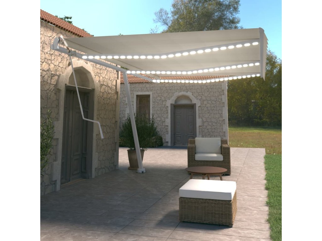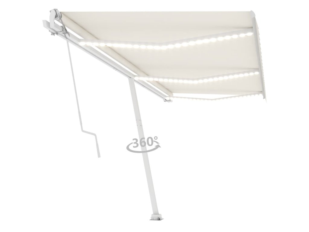 Zahradní markýza má práškově lakovaný hliníkový rám, který nerezaví, je lehký a přitom tvoří velice pevnou konstrukci. Stříška je vyrobená z polyesteru s vysokou hustotou a s PU povlakem, skvěle proto odolává vodě i UV záření. Úhel a výšku samostatně stojící markýzy si navíc můžete nastavit podle vašich momentálních potřeb. Robustní stojan lze otáčet o 360 stupňů, což vám dává maximální možnost přizpůsobení. Automatickou stříšku snadno roztáhnete a zatáhnete pomocí dálkového ovladače. K hladkému ovládání vám poslouží také dlouhá ruční klika. Markýza je rovněž opatřená senzorem větru, který ji za větrných dnů automaticky zavře. LED světla vám zase v noci poskytnou energeticky úsporné osvětlení.