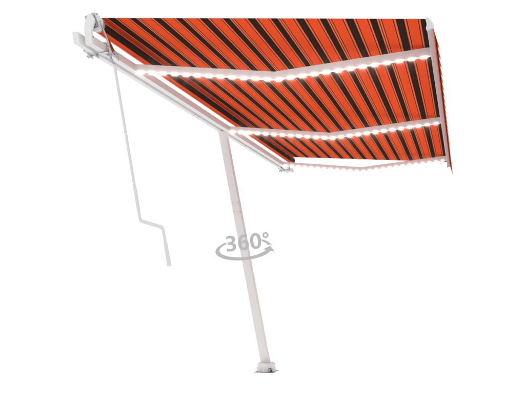 Zahradní markýza má práškově lakovaný hliníkový rám, který nerezaví, je lehký a přitom tvoří velice pevnou konstrukci. Stříška je vyrobená z polyesteru s vysokou hustotou a s PU povlakem, skvěle proto odolává vodě i UV záření. Úhel a výšku samostatně stojící markýzy si navíc můžete nastavit podle vašich momentálních potřeb. Robustní stojan lze otáčet o 360 stupňů, což vám dává maximální možnost přizpůsobení. Automatickou stříšku snadno roztáhnete a zatáhnete pomocí dálkového ovladače. K hladkému ovládání vám poslouží také dlouhá ruční klika. Markýza je rovněž opatřená senzorem větru, který ji za větrných dnů automaticky zavře. LED světla vám zase v noci poskytnou energeticky úsporné osvětlení.