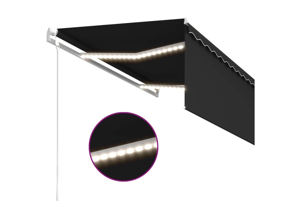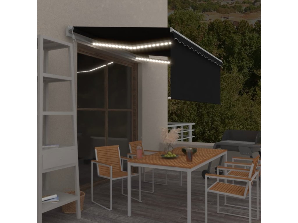 Zahradní markýza má práškově lakovaný hliníkový rám, který nerezaví, je lehký, a přitom tvoří velice pevnou konstrukci. Stříška je vyrobená z polyesteru s vysokou hustotou a s PU povlakem, skvěle proto odolává vodě i UV záření. Úhel a výšku markýzy si navíc můžete nastavit tak, aby to vyhovovalo vašim momentálním potřebám. Automatickou stříšku snadno roztáhnete a zatáhnete dálkovým ovladačem. K hladkému ovládání vám poslouží také dlouhá ruční klika. Markýza je dále opatřená senzorem větru, který ji za větrných dnů automaticky zavře. LED světla vám v noci poskytnou energeticky úsporné osvětlení. Roleta vás ochrání před UV paprsky a zajistí vám soukromí.