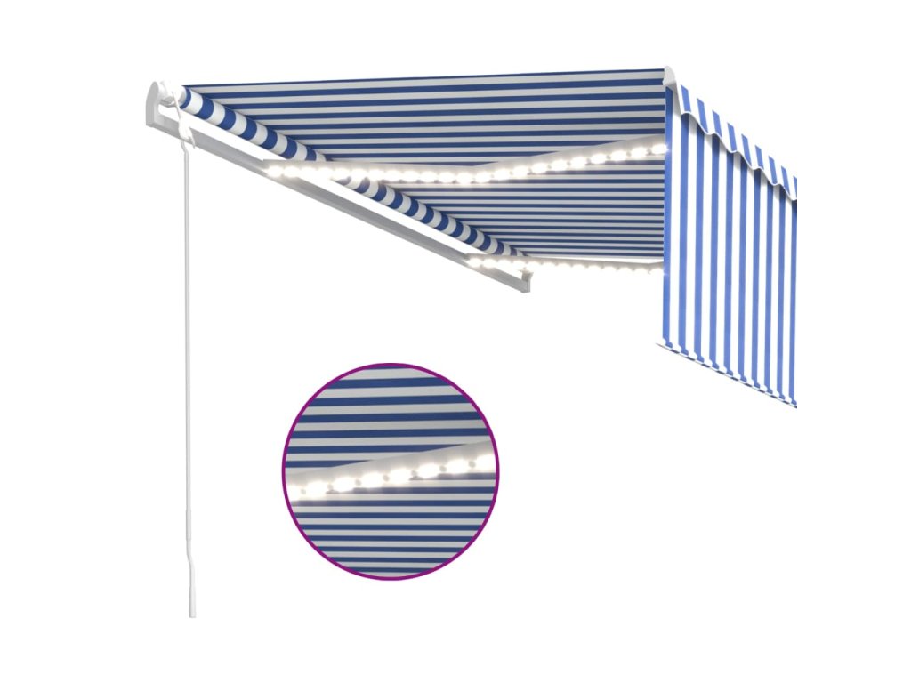 Zahradní markýza má práškově lakovaný hliníkový rám, který nerezaví, je lehký, a přitom tvoří velice pevnou konstrukci. Stříška je vyrobená z polyesteru s vysokou hustotou a s PU povlakem, skvěle proto odolává vodě i UV záření. Úhel a výšku markýzy si navíc můžete nastavit tak, aby to vyhovovalo vašim momentálním potřebám. Automatickou stříšku snadno roztáhnete a zatáhnete dálkovým ovladačem. K hladkému ovládání vám poslouží také dlouhá ruční klika. Markýza je dále opatřená senzorem větru, který ji za větrných dnů automaticky zavře. LED světla vám v noci poskytnou energeticky úsporné osvětlení. Roleta vás ochrání před UV paprsky a zajistí vám soukromí.