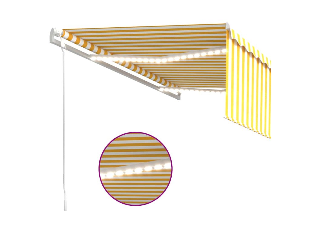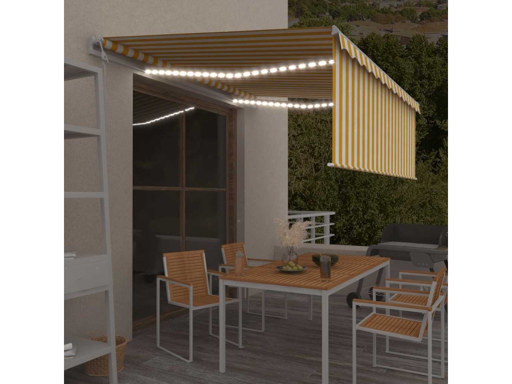Zahradní markýza má práškově lakovaný hliníkový rám, který nerezaví, je lehký, a přitom tvoří velice pevnou konstrukci. Stříška je vyrobená z polyesteru s vysokou hustotou a s PU povlakem, skvěle proto odolává vodě i UV záření. Úhel a výšku markýzy si navíc můžete nastavit tak, aby to vyhovovalo vašim momentálním potřebám. Automatickou stříšku snadno roztáhnete a zatáhnete dálkovým ovladačem. K hladkému ovládání vám poslouží také dlouhá ruční klika. Markýza je dále opatřená senzorem větru, který ji za větrných dnů automaticky zavře. LED světla vám v noci poskytnou energeticky úsporné osvětlení. Roleta vás ochrání před UV paprsky a zajistí vám soukromí.