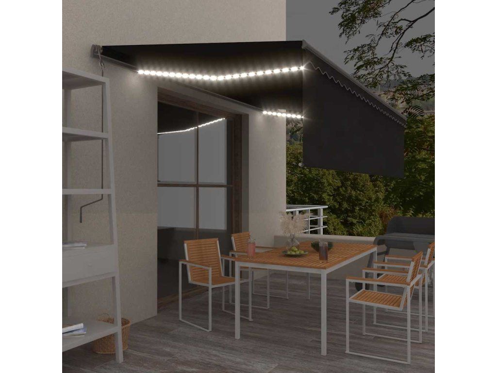 Zahradní markýza má práškově lakovaný hliníkový rám, který nerezaví, je lehký, a přitom tvoří velice pevnou konstrukci. Stříška je vyrobená z polyesteru s vysokou hustotou a s PU povlakem, skvěle proto odolává vodě i UV záření. Úhel a výšku markýzy si navíc můžete nastavit tak, aby to vyhovovalo vašim momentálním potřebám. Automatickou stříšku snadno roztáhnete a zatáhnete dálkovým ovladačem. K hladkému ovládání vám poslouží také dlouhá ruční klika. Markýza je dále opatřená senzorem větru, který ji za větrných dnů automaticky zavře. LED světla vám v noci poskytnou energeticky úsporné osvětlení. Roleta vás ochrání před UV paprsky a zajistí vám soukromí.