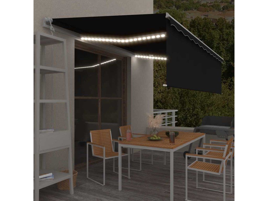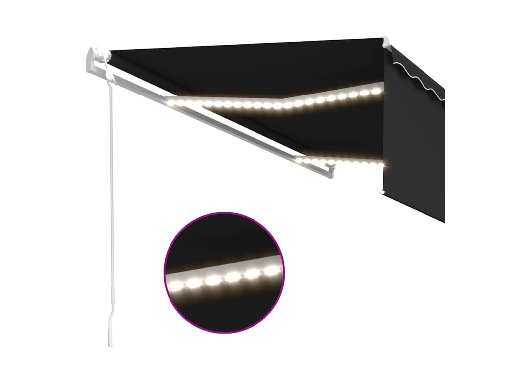 Zahradní markýza má práškově lakovaný hliníkový rám, který nerezaví, je lehký, a přitom tvoří velice pevnou konstrukci. Stříška je vyrobená z polyesteru s vysokou hustotou a s PU povlakem, skvěle proto odolává vodě i UV záření. Úhel a výšku markýzy si navíc můžete nastavit tak, aby to vyhovovalo vašim momentálním potřebám. Automatickou stříšku snadno roztáhnete a zatáhnete dálkovým ovladačem. K hladkému ovládání vám poslouží také dlouhá ruční klika. Markýza je dále opatřená senzorem větru, který ji za větrných dnů automaticky zavře. LED světla vám v noci poskytnou energeticky úsporné osvětlení. Roleta vás ochrání před UV paprsky a zajistí vám soukromí.