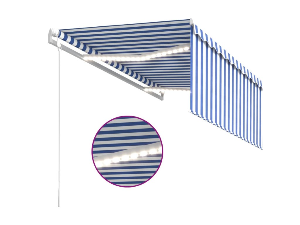 Zahradní markýza má práškově lakovaný hliníkový rám, který nerezaví, je lehký, a přitom tvoří velice pevnou konstrukci. Stříška je vyrobená z polyesteru s vysokou hustotou a s PU povlakem, skvěle proto odolává vodě i UV záření. Úhel a výšku markýzy si navíc můžete nastavit tak, aby to vyhovovalo vašim momentálním potřebám. Automatickou stříšku snadno roztáhnete a zatáhnete dálkovým ovladačem. K hladkému ovládání vám poslouží také dlouhá ruční klika. Markýza je dále opatřená senzorem větru, který ji za větrných dnů automaticky zavře. LED světla vám v noci poskytnou energeticky úsporné osvětlení. Roleta vás ochrání před UV paprsky a zajistí vám soukromí.