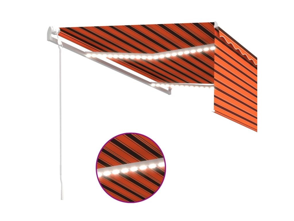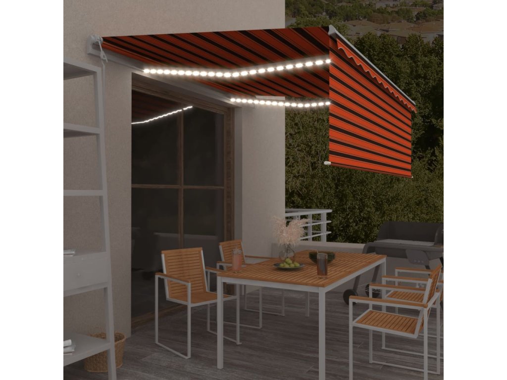 Zahradní markýza má práškově lakovaný hliníkový rám, který nerezaví, je lehký, a přitom tvoří velice pevnou konstrukci. Stříška je vyrobená z polyesteru s vysokou hustotou a s PU povlakem, skvěle proto odolává vodě i UV záření. Úhel a výšku markýzy si navíc můžete nastavit tak, aby to vyhovovalo vašim momentálním potřebám. Automatickou stříšku snadno roztáhnete a zatáhnete dálkovým ovladačem. K hladkému ovládání vám poslouží také dlouhá ruční klika. Markýza je dále opatřená senzorem větru, který ji za větrných dnů automaticky zavře. LED světla vám v noci poskytnou energeticky úsporné osvětlení. Roleta vás ochrání před UV paprsky a zajistí vám soukromí.