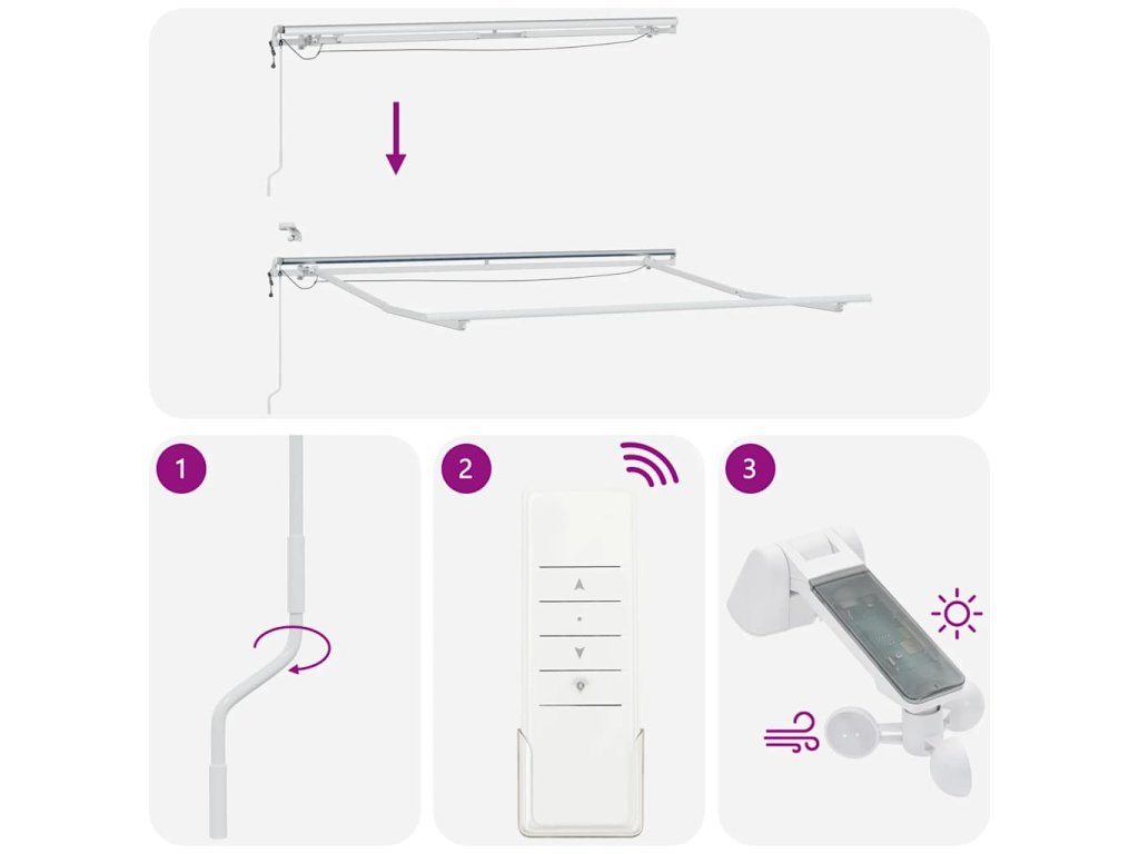 - Automatická funkce: Markýzu snadno roztáhnete a zatáhnete pomocí přiloženého dálkového ovladače.