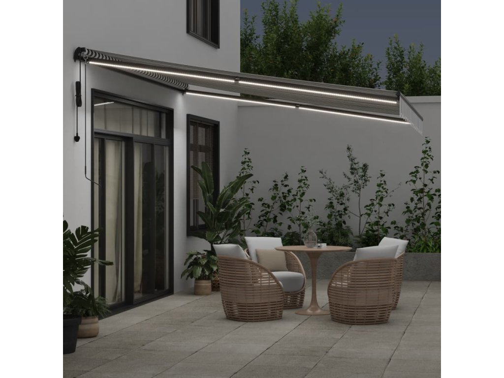 - LED světla a senzor větru: Integrovaná LED světla markýzy osvětlí váš venkovní obytný prostor a vytvoří útulnou a romantickou atmosféru po západu slunce. Markýza je dále opatřená senzorem větru, který ji za větrných dnů automaticky zavře.