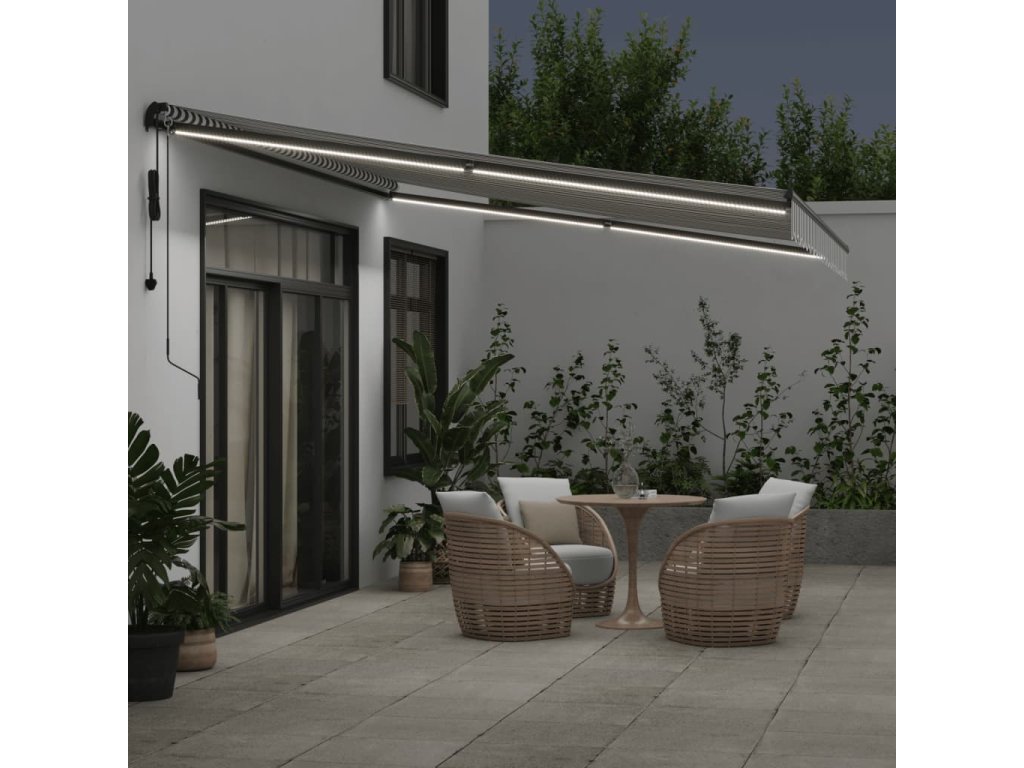 - LED světla a senzor větru: Integrovaná LED světla markýzy osvětlí váš venkovní obytný prostor a vytvoří útulnou a romantickou atmosféru po západu slunce. Markýza je dále opatřená senzorem větru, který ji za větrných dnů automaticky zavře.