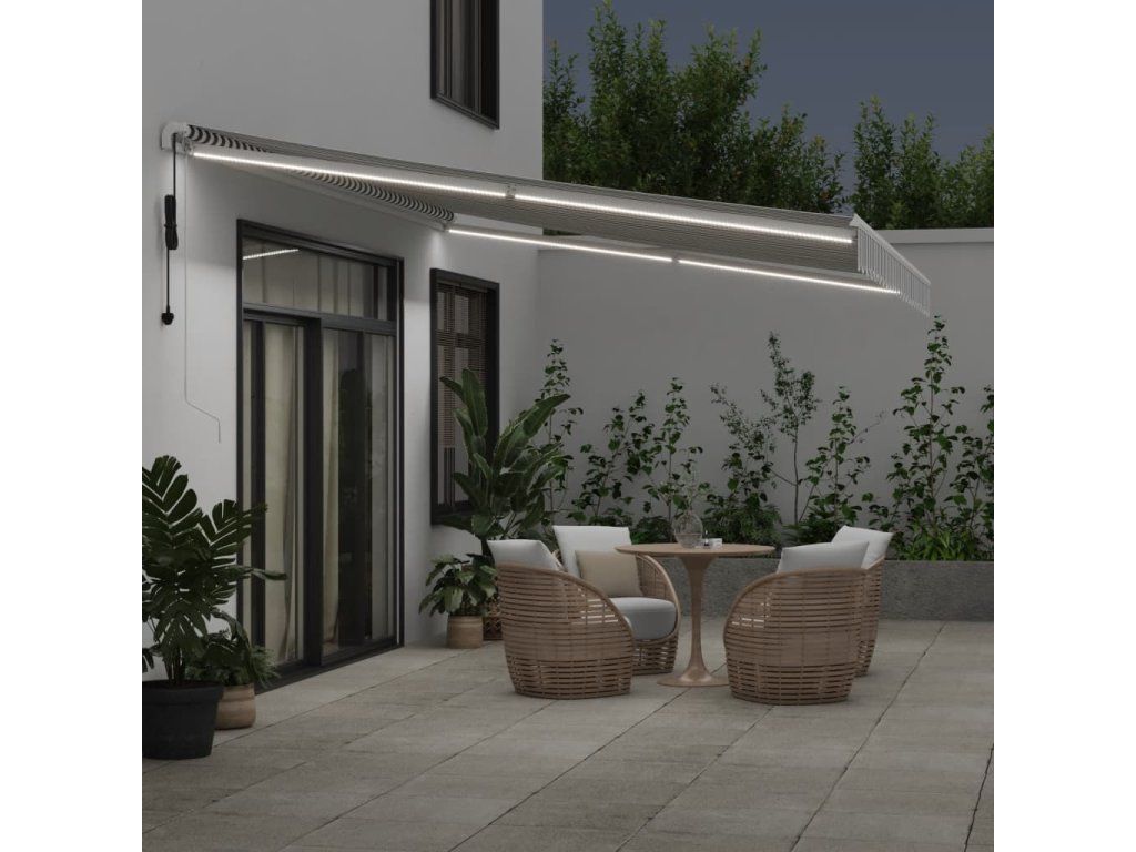 - LED světla a senzor větru: Integrovaná LED světla markýzy osvětlí váš venkovní obytný prostor a vytvoří útulnou a romantickou atmosféru po západu slunce. Markýza je dále opatřená senzorem větru, který ji za větrných dnů automaticky zavře.