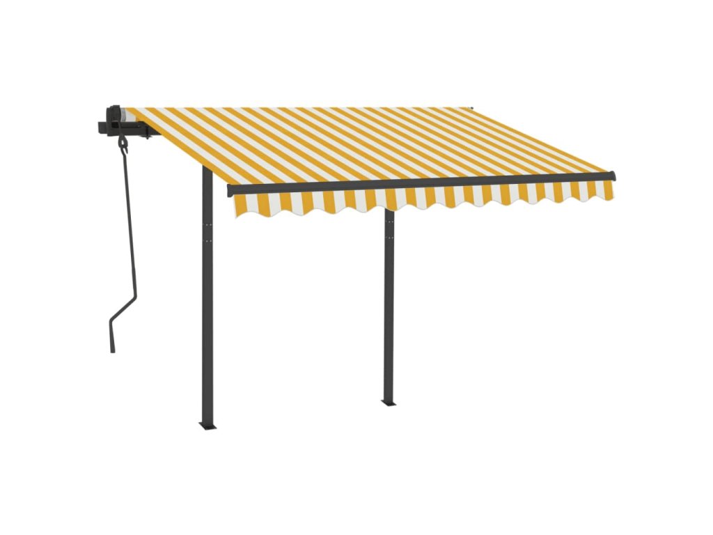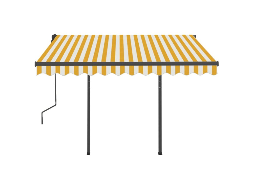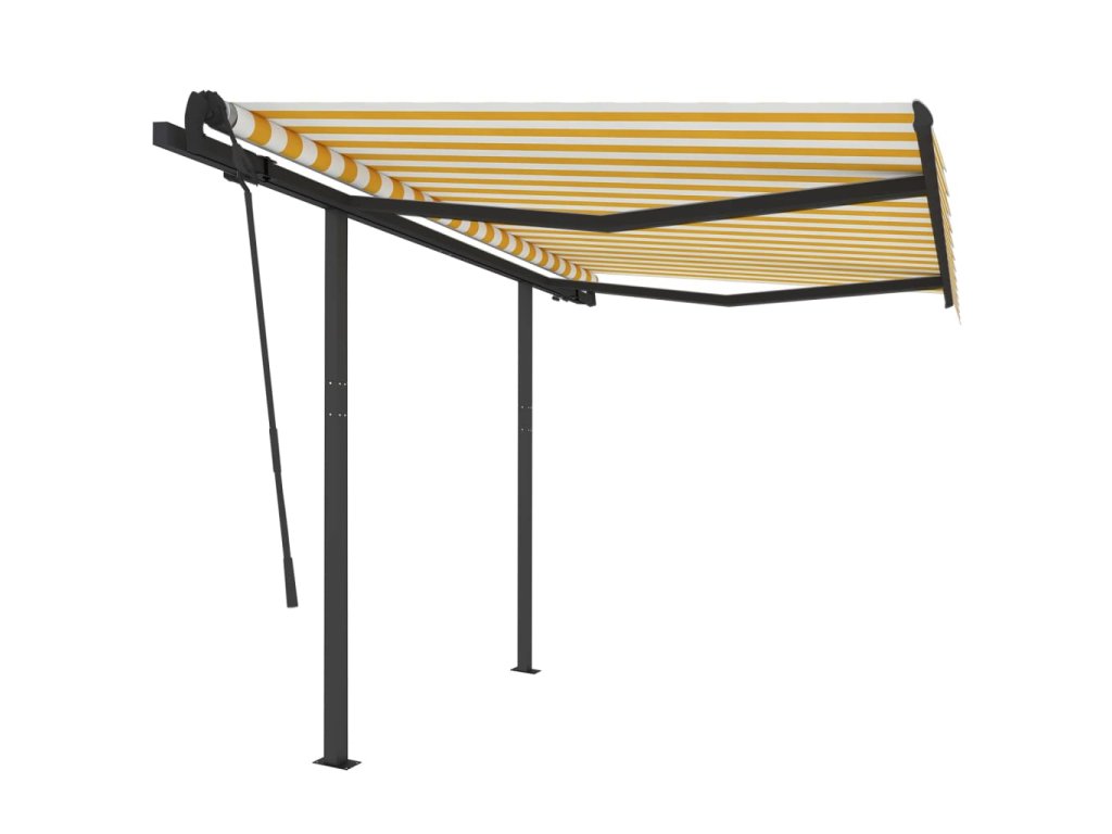 Zahradní markýza má práškově lakovaný hliníkový rám, který nerezaví, je lehký, a přitom tvoří velice pevnou konstrukci. Robustní železné sloupky jí přidávají na stabilitě. Stříška je vyrobená z polyesteru s vysokou hustotou a s PU povlakem, skvěle proto odolává vodě i UV záření. Úhel a výšku markýzy si navíc můžete nastavit tak, aby to vyhovovalo vašim momentálním potřebám. Automatickou stříšku snadno roztáhnete a zatáhnete pomocí dálkového ovladače. K hladkému ovládání vám poslouží také dlouhá ruční klika.