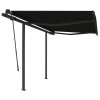 Zahradní markýza má práškově lakovaný hliníkový rám, který nerezaví, je lehký, a přitom tvoří velice pevnou konstrukci. Robustní železné sloupky jí přidávají na stabilitě. Stříška je vyrobená z polyesteru s vysokou hustotou a s PU povlakem, skvěle proto odolává vodě i UV záření. Úhel a výšku markýzy si navíc můžete nastavit tak, aby to vyhovovalo vašim momentálním potřebám. Automatickou stříšku snadno roztáhnete a zatáhnete pomocí dálkového ovladače. K hladkému ovládání vám poslouží také dlouhá ruční klika.