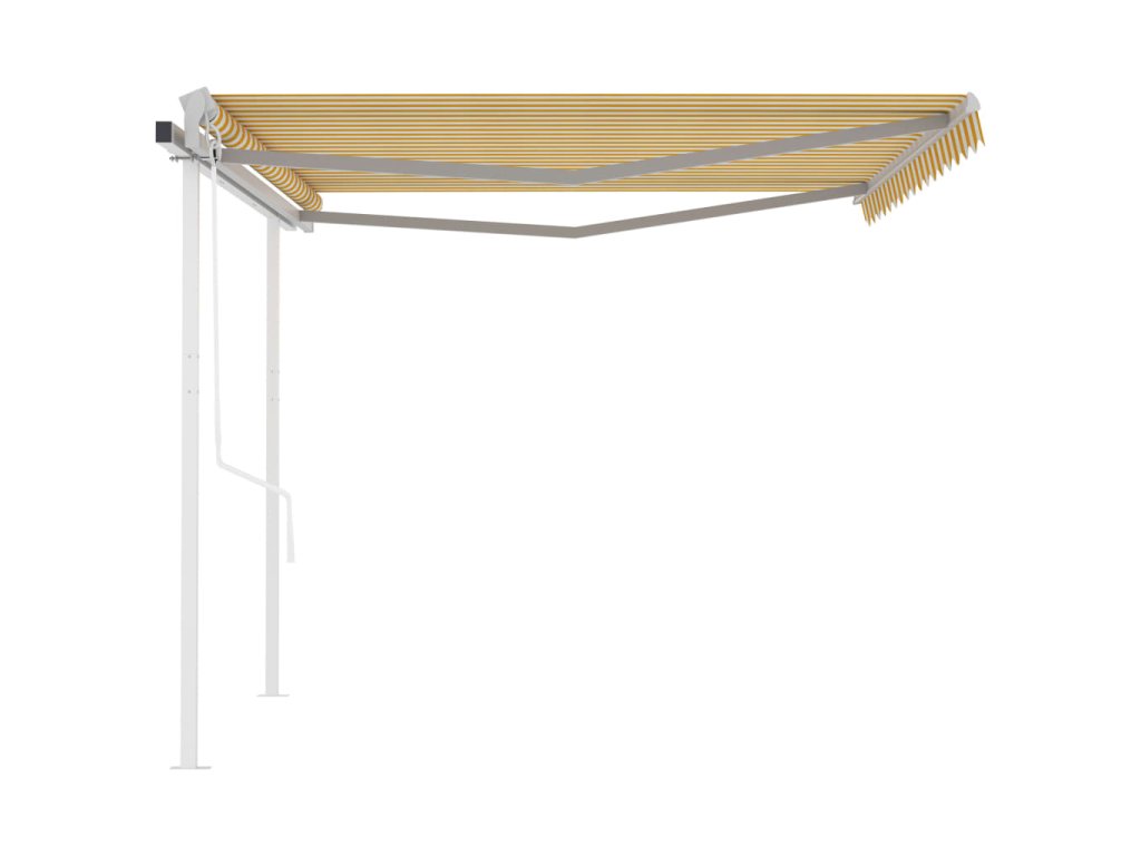 Zahradní markýza má práškově lakovaný hliníkový rám, který nerezaví, je lehký, a přitom tvoří velice pevnou konstrukci. Zatahovací stříška je zhotovená z vysokohustotního polyesteru potaženého vrstvou PU, výborně tedy vzdoruje vodě i UV záření. Robustní železné sloupky dodávají markýze na stabilitě a odolnosti. Úhel a výšku si můžete navíc nastavit dle svých konkrétních potřeb. Automatickou stříšku snadno roztáhnete a zatáhnete pomocí dálkového ovladače. K hladkému ovládání vám poslouží také dlouhá ruční klika.