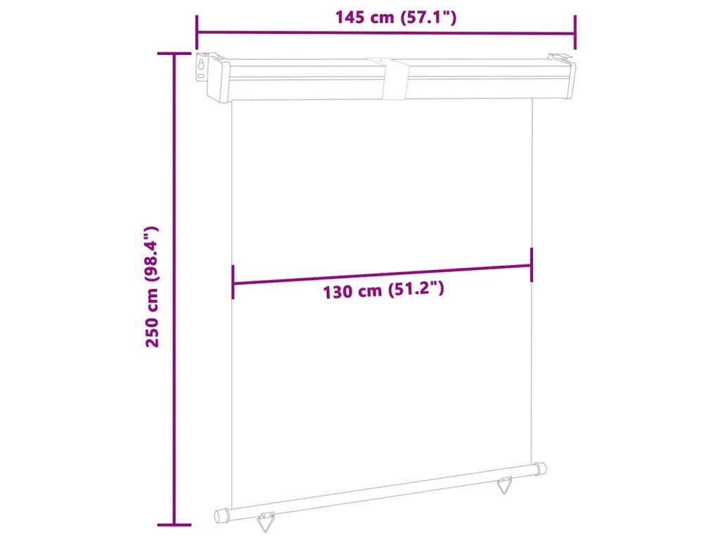 Zástěna je vyrobená z polyesteru, který je odolný jak vůči UV záření, tak proti roztržení. Hliníková rolna zajišťuje hladké vysouvání. Má samosvornou funkci, takže ji můžete zastavit na jakémkoli místě. Délku lze nastavit až do 250 cm. Boční markýza se dá automaticky stáhnout zpět do ocelové kazety pouhým zatažením za spodní trojúhelníkové kroužky. Navíc umožňuje flexibilní upevnění buď na stěnu, nebo na strop podle konkrétních potřeb.