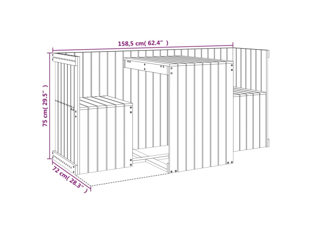 - Rozměry: 158,5 x 72 x 75 cm (D x Š x V)