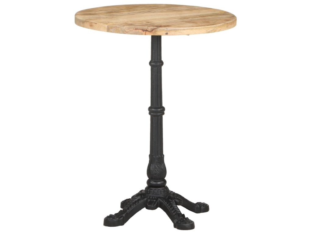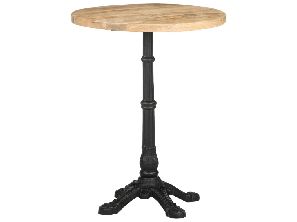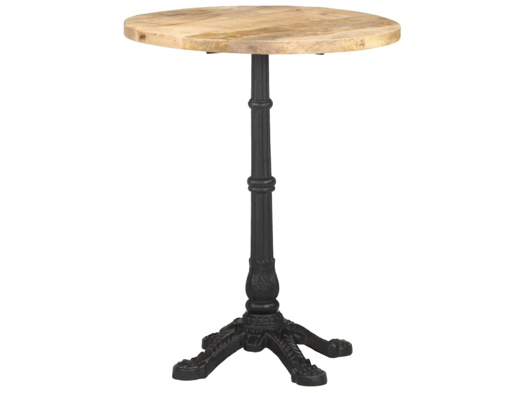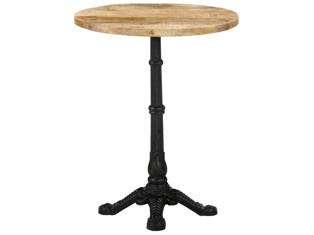 Stolní deska je vyrobená z hrubého mangovníkového dřeva s přírodním povrchem. Jedná se o tropické tvrdé dřevo, které dokáže unést značnou váhu. Skvěle také odolává opotřebení a působení času, takže je stabilní a dlouho vydrží. Litinová základna zajišťuje výtečnou rovnováhu a pevnost. Tento jídelní stůl vám rovněž poslouží k odkládání nápojů či jiných věcí, které chcete mít vždy po ruce.